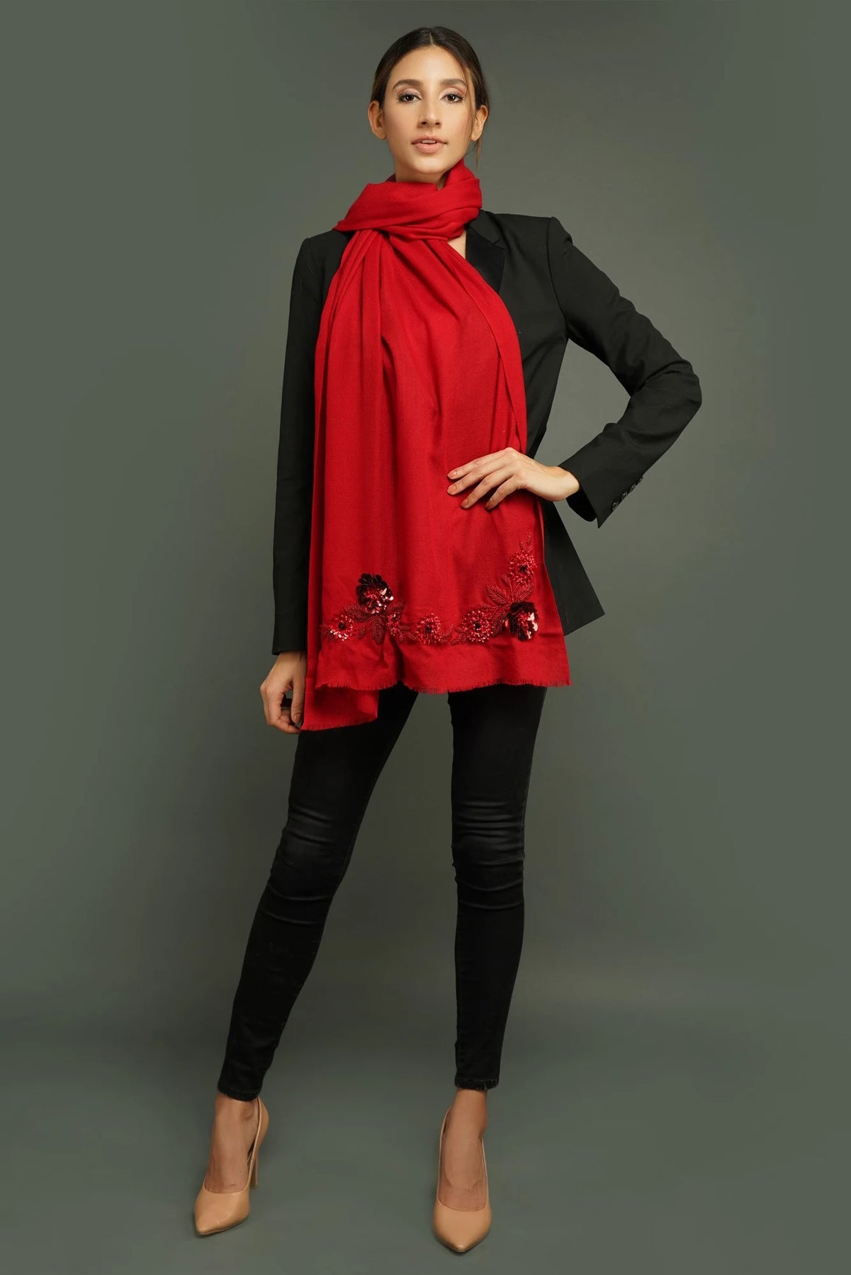 This 100% cashmere wool stole ,Woven by hand and 3D floral work will enhance your look with any of your outfits. The fabric is warm and soft , and will make you feel Young and stylish. The stole size is 28x80
