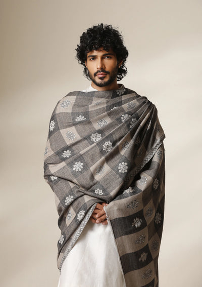 Dusala Grey Heritage Kani Check Shawl for Men & Women
