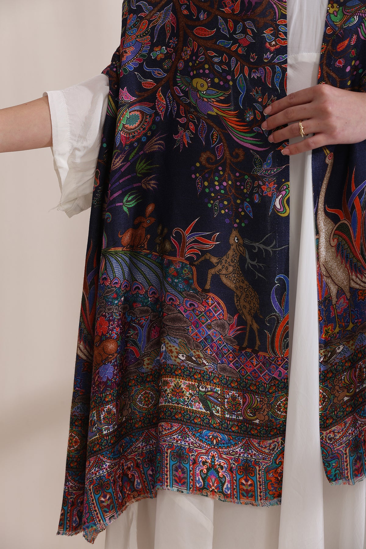 Experience unmatched comfort and artistry with the Enchanted Garden Navy Blue Multicolor Faux Pashmina Stole, crafted from extra soft, lightweight faux pashmina for a luxurious touch. The vibrant print features enchanting florals, birds, and wildlife inspired by Kashmiri traditions, instantly elevating any outfit with a splash of color and elegance. Its versatile size allows for easy styling—draped over shoulders, wrapped as a scarf, or paired with both ethnic and western looks. This stole makes for a perfect gift, thanks to its timeless design and sumptuous softness; it’s a true “no brainer” for birthdays, anniversaries, special occasions, or thoughtful corporate gifting. With its blend of comfort, sophistication, and universal appeal, gifting this stole guarantees delight every time