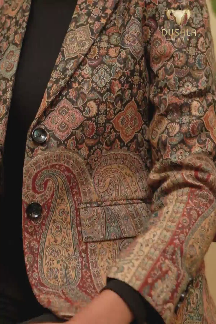 Elevate your style with Raji, our multicolor fine wool silk blazer, combining timeless elegance and cozy warmth in a single exquisite piece.