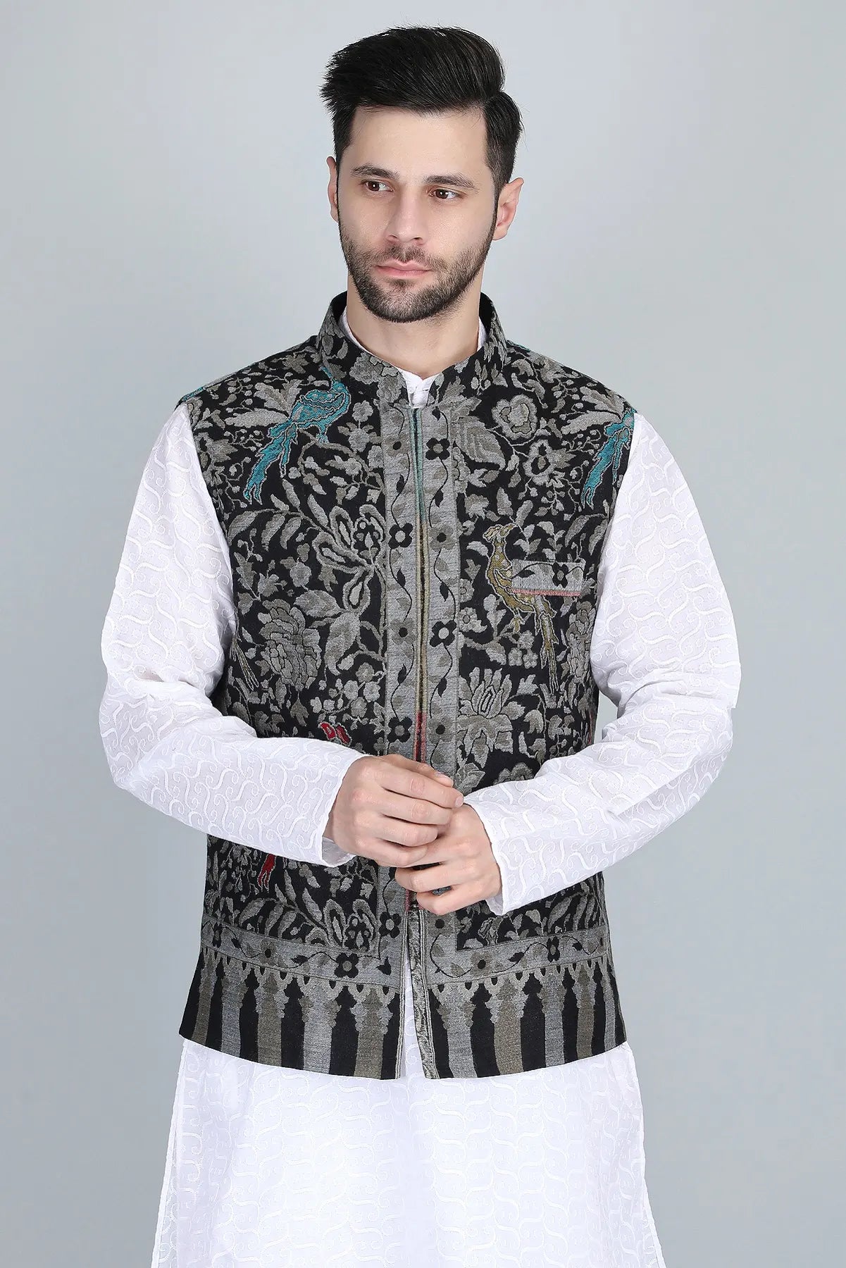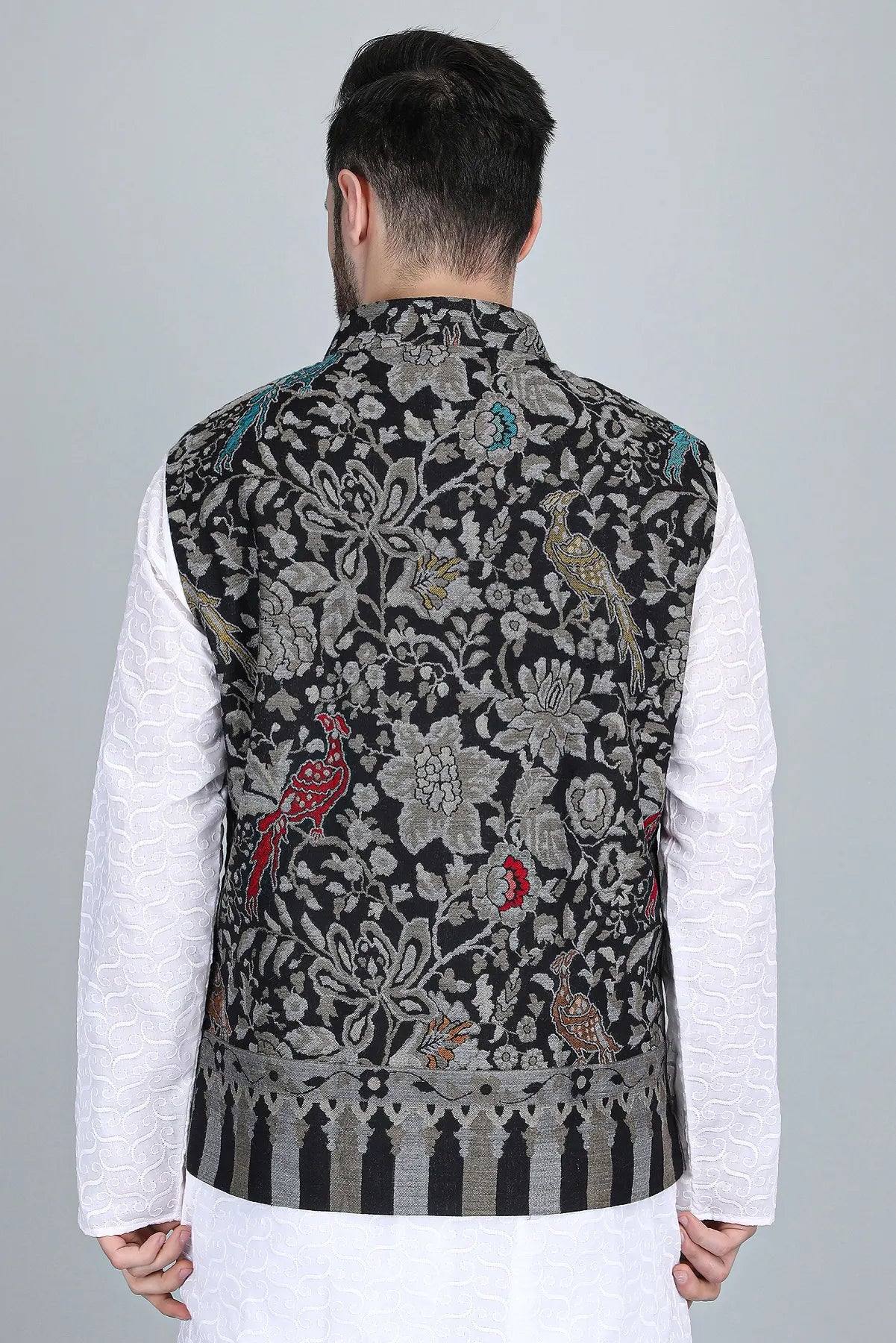 The Neev Fine Wool Silk Kani Cape is a luxurious garment crafted from a blend of fine wool and silk, providing both warmth and elegance. It features a sophisticated Kani design, perfect for layering over various outfits. Neev Jacket is ideal for both casual and formal occasions, showcasing a timeless style that enhances any wardrobe.