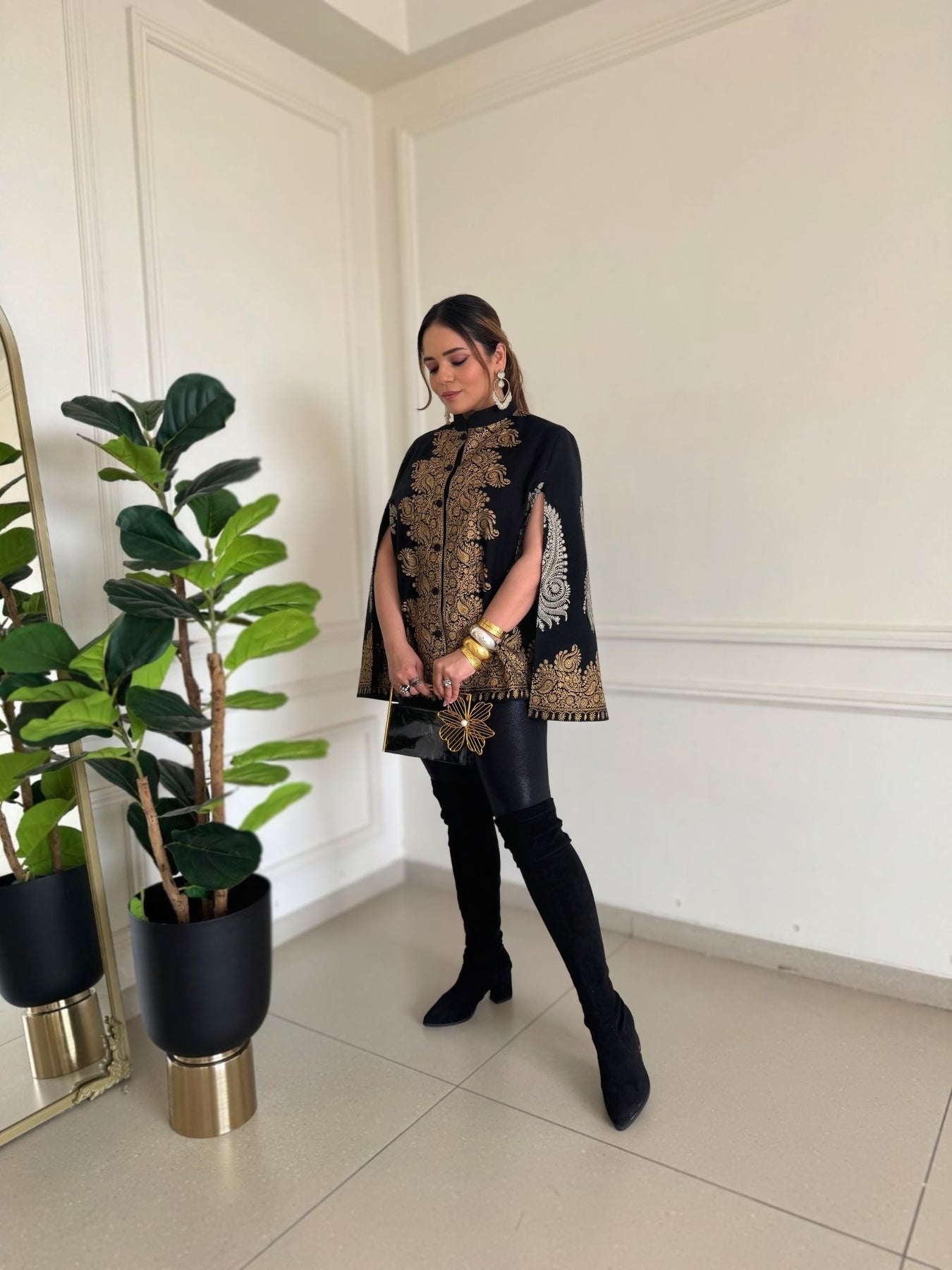 -  Ira Fine Wool Silk with Zari Embroidery Cape