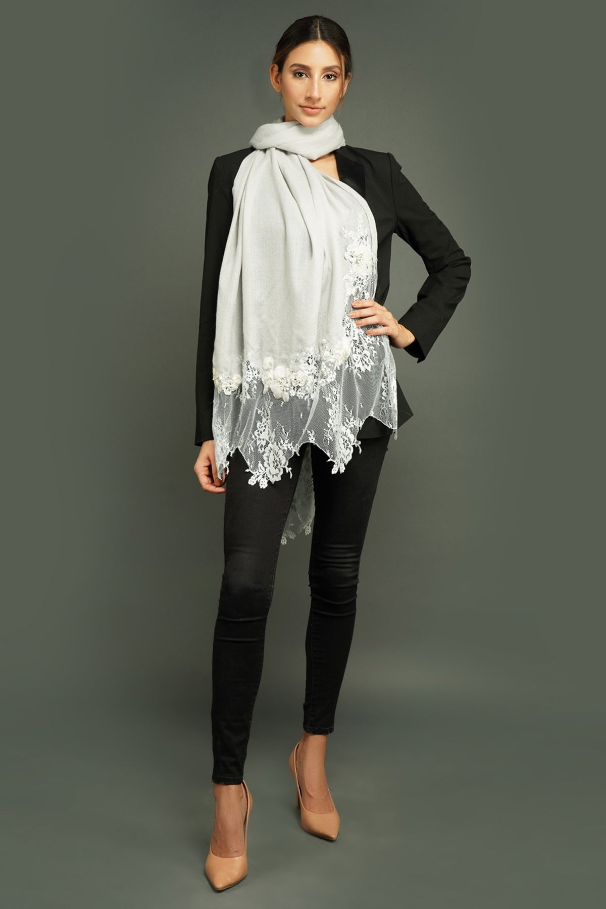 This cashmere wool stole with 3D floral design will enhance your look with any of your outfits. The fabric is warm and soft , and will make you feel Young and stylish. The stole size is 28x80.
