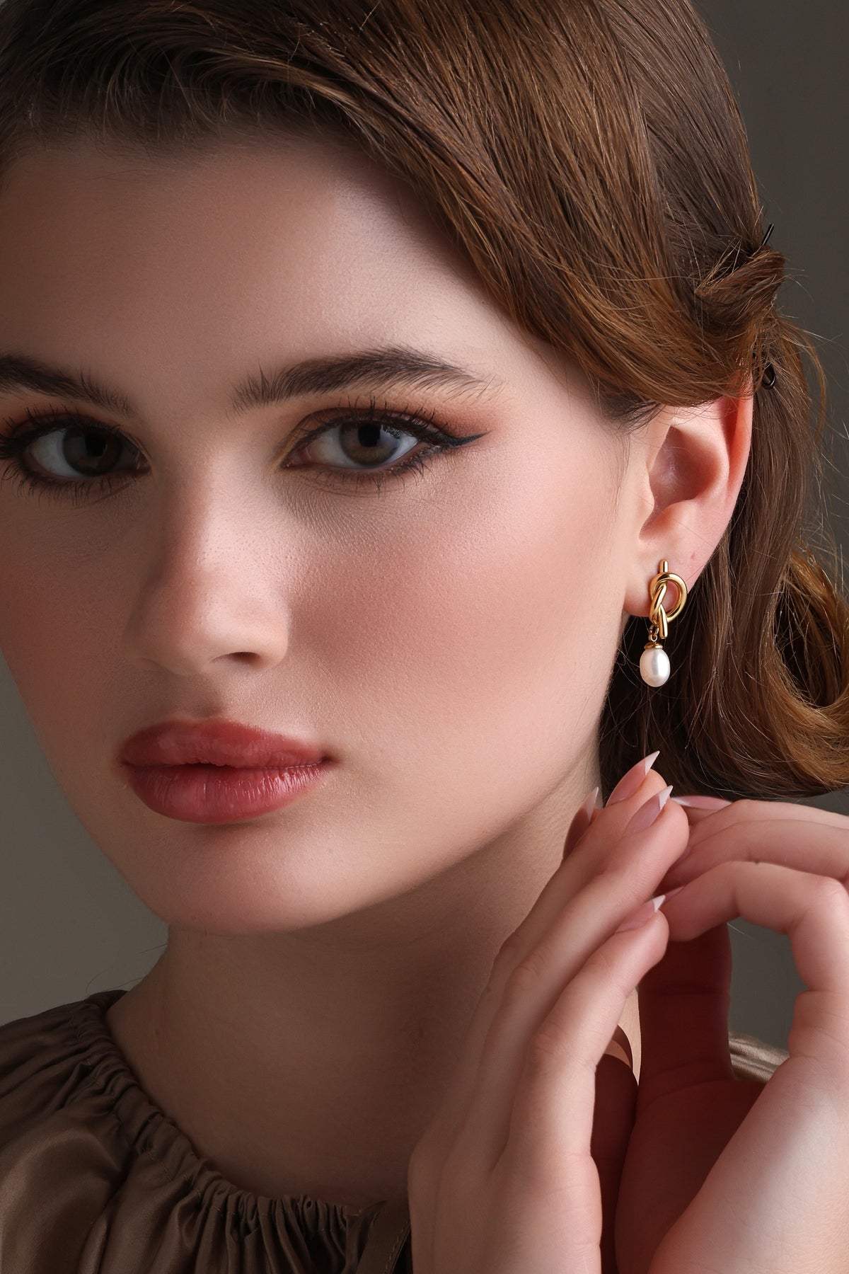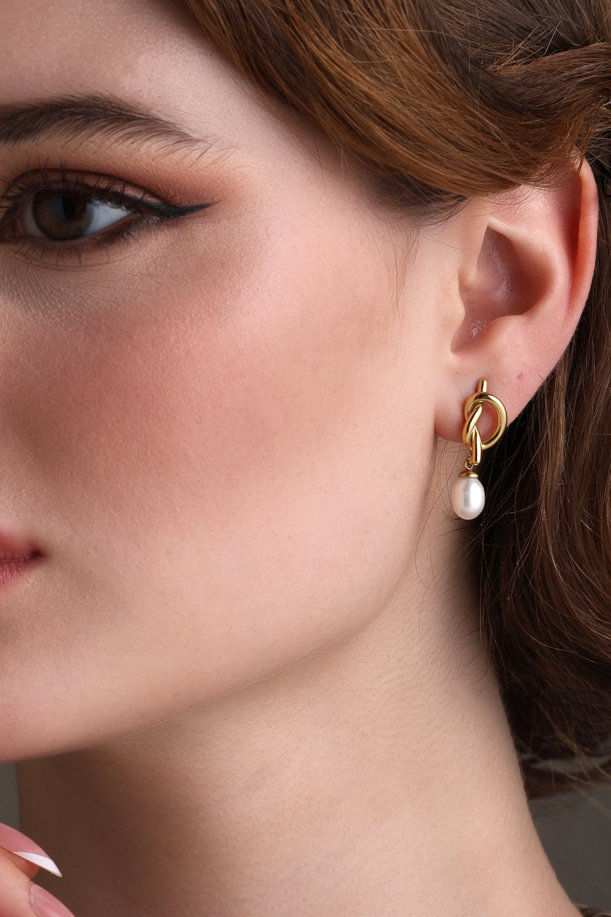 Discover sophistication in these luxurious knot drop earrings, showcasing freshwater pearls set in high-quality stainless steel for a versatile accessory.