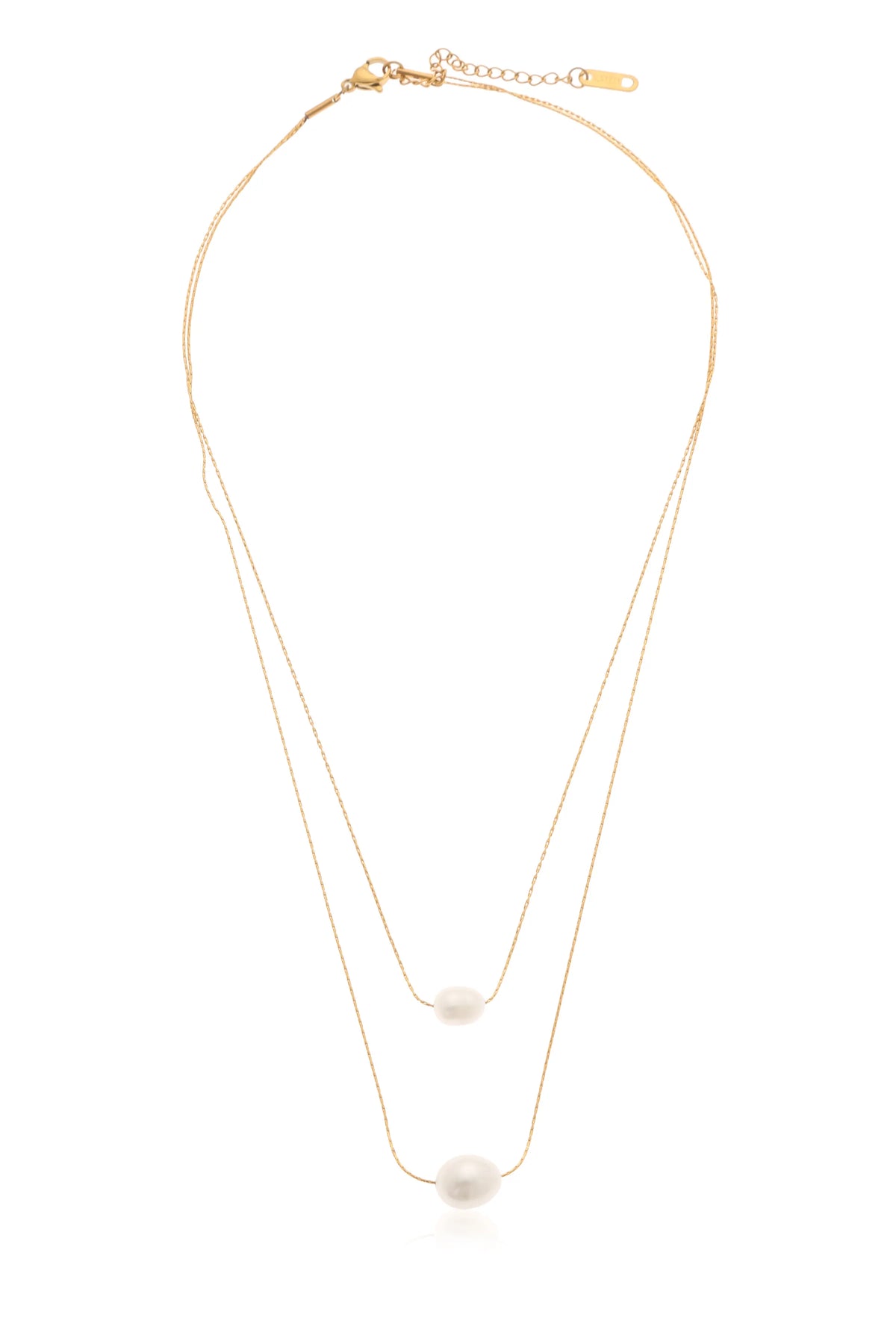 Elevate your neckline with this double-layer overlay necklace, showcasing high-quality freshwater pearls in a sophisticated stainless steel setting.