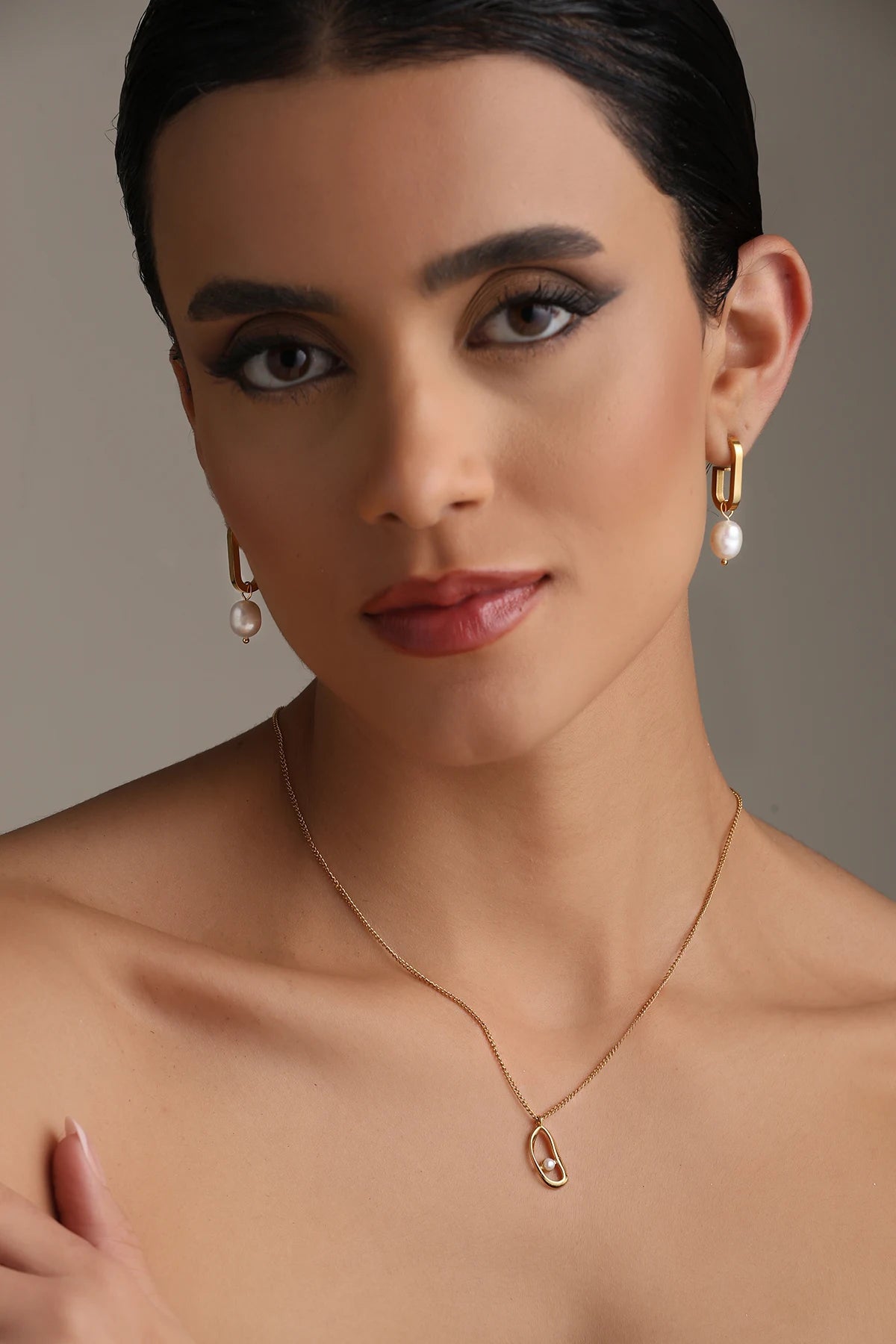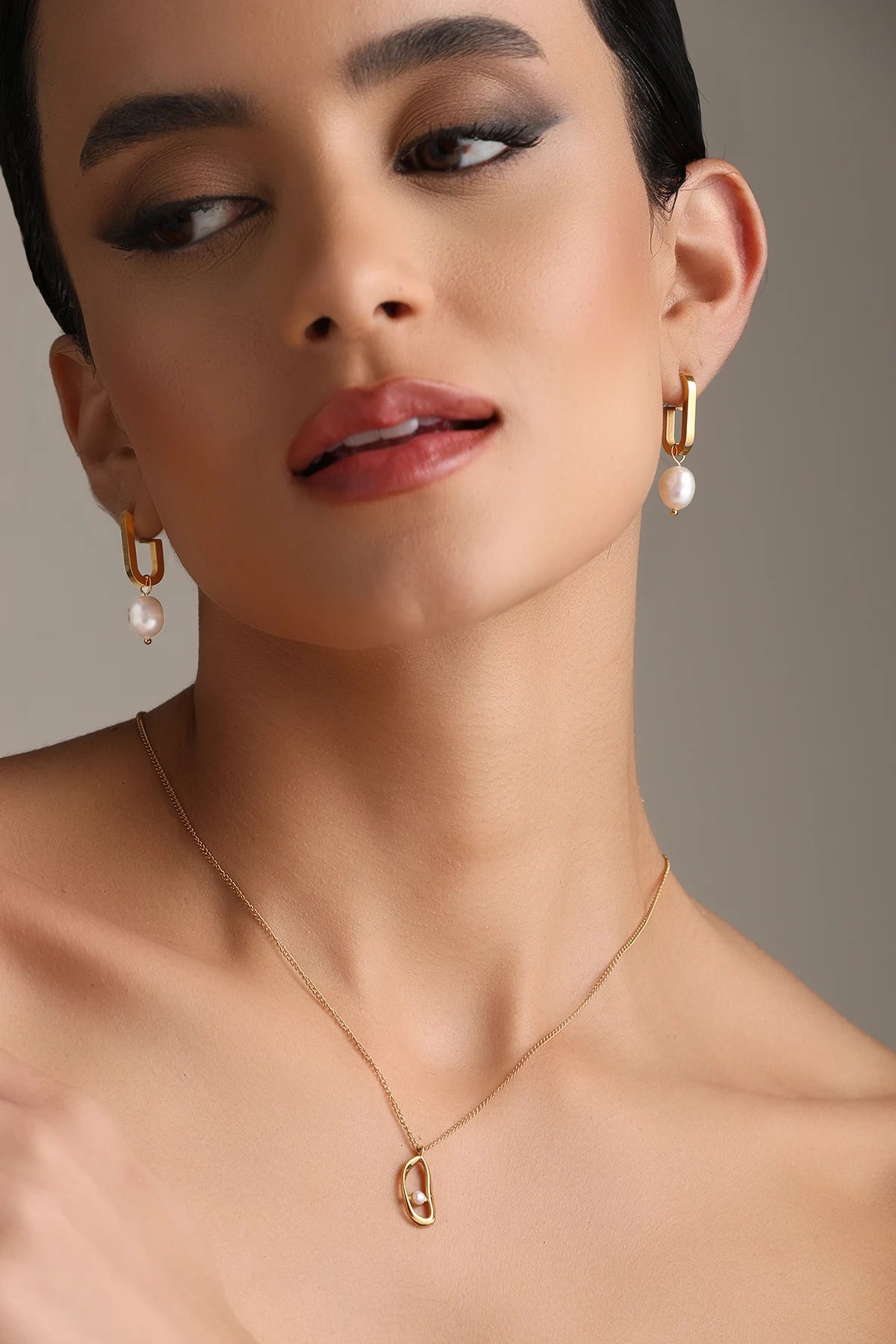 A trendy waterproof pendant necklace, showcasing natural pearls. This stainless steel design makes it an ideal gift for women.