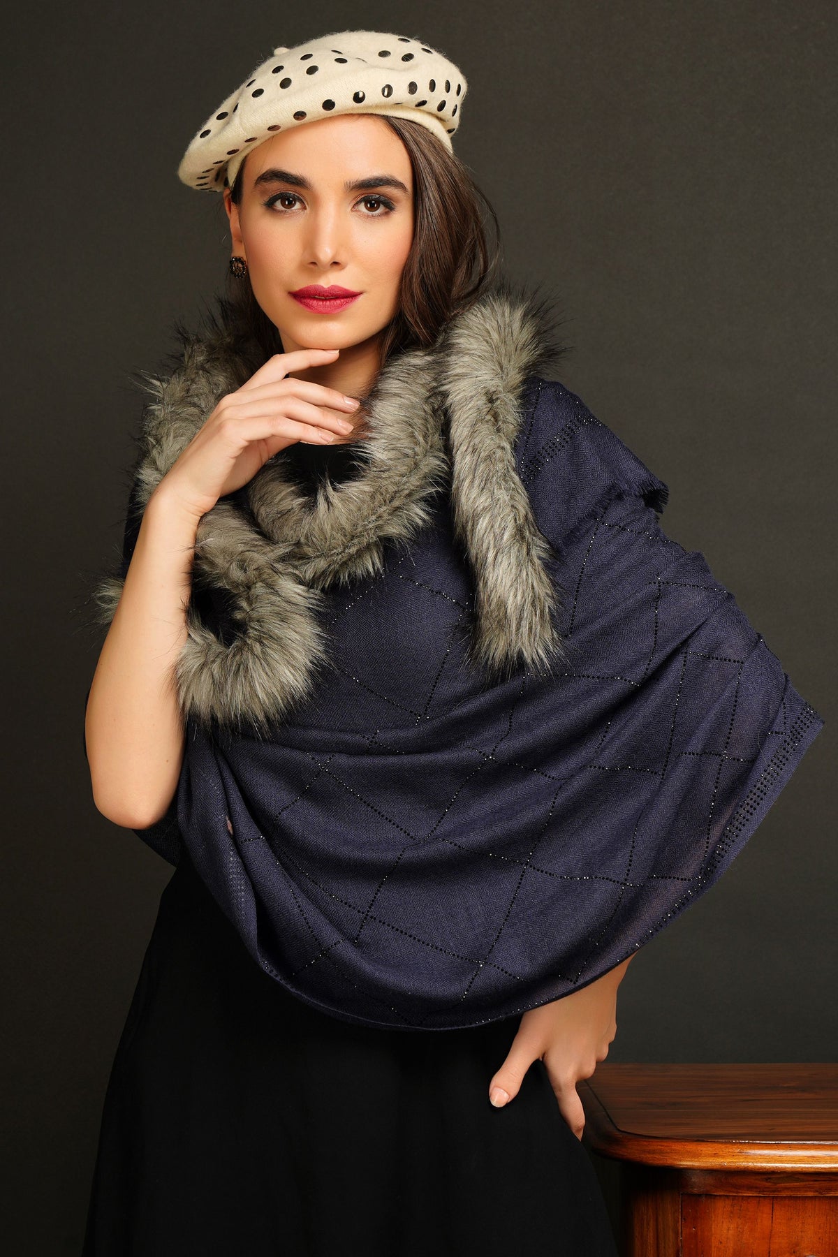 Fur Collar With Stone Work Pashmina Stole Rs. 12,593.00