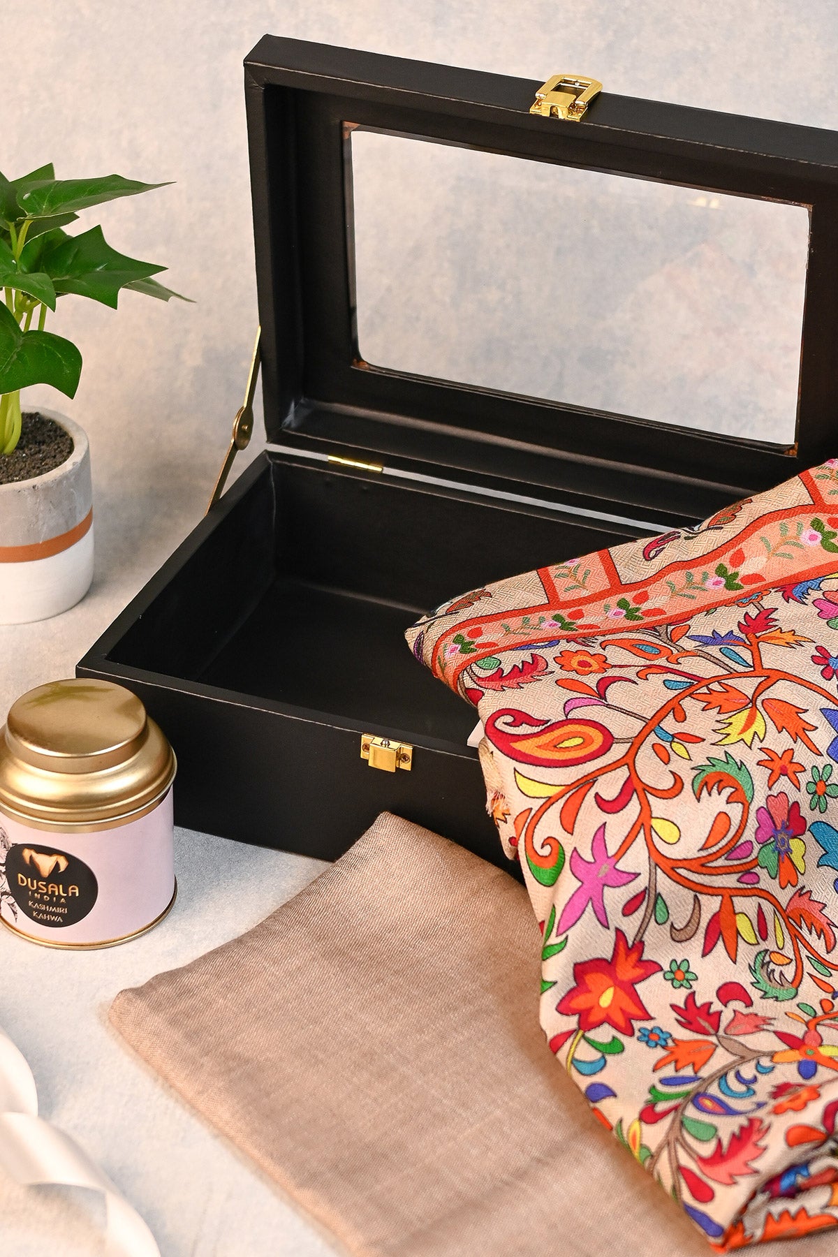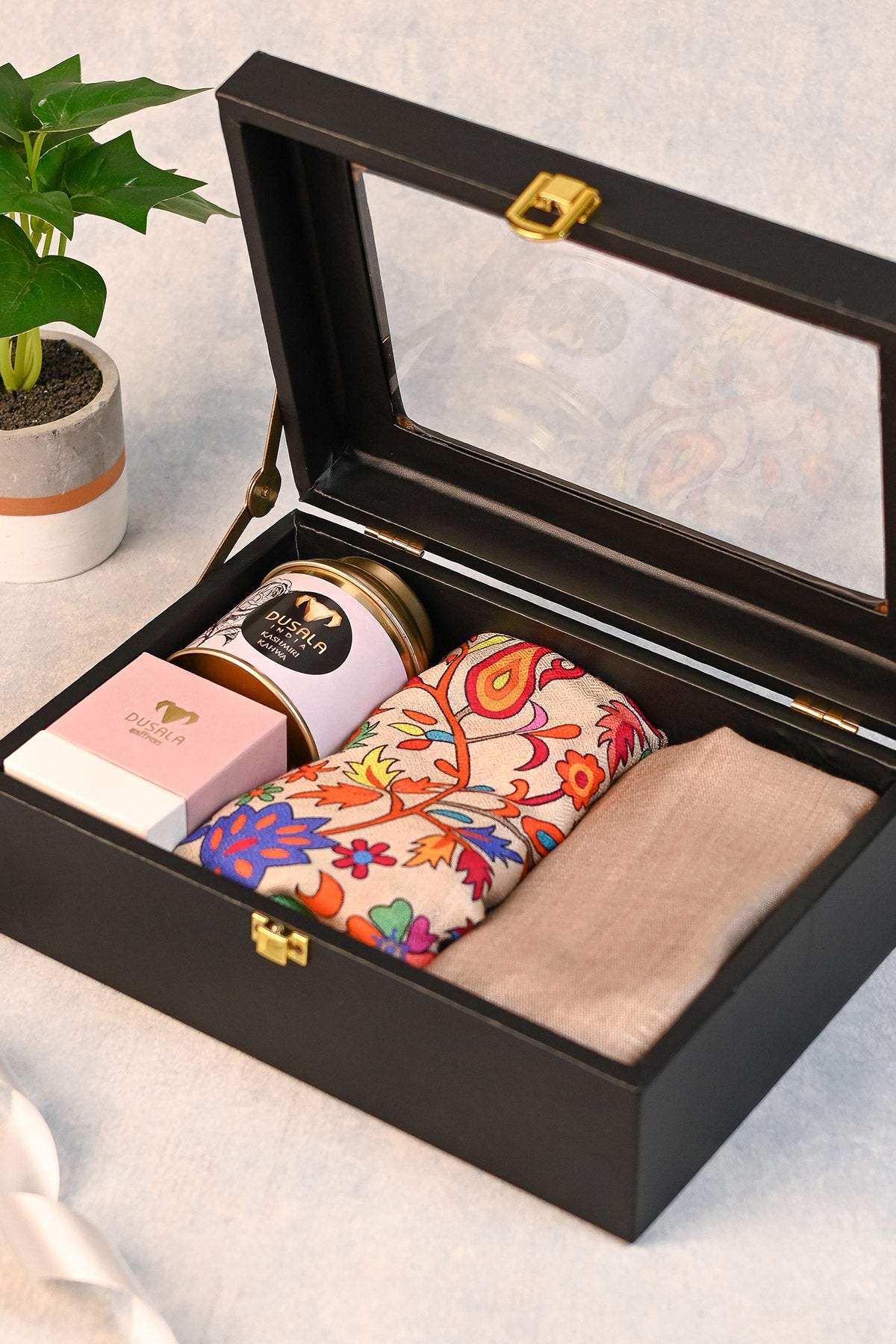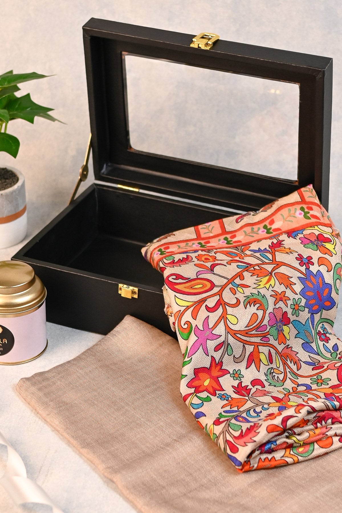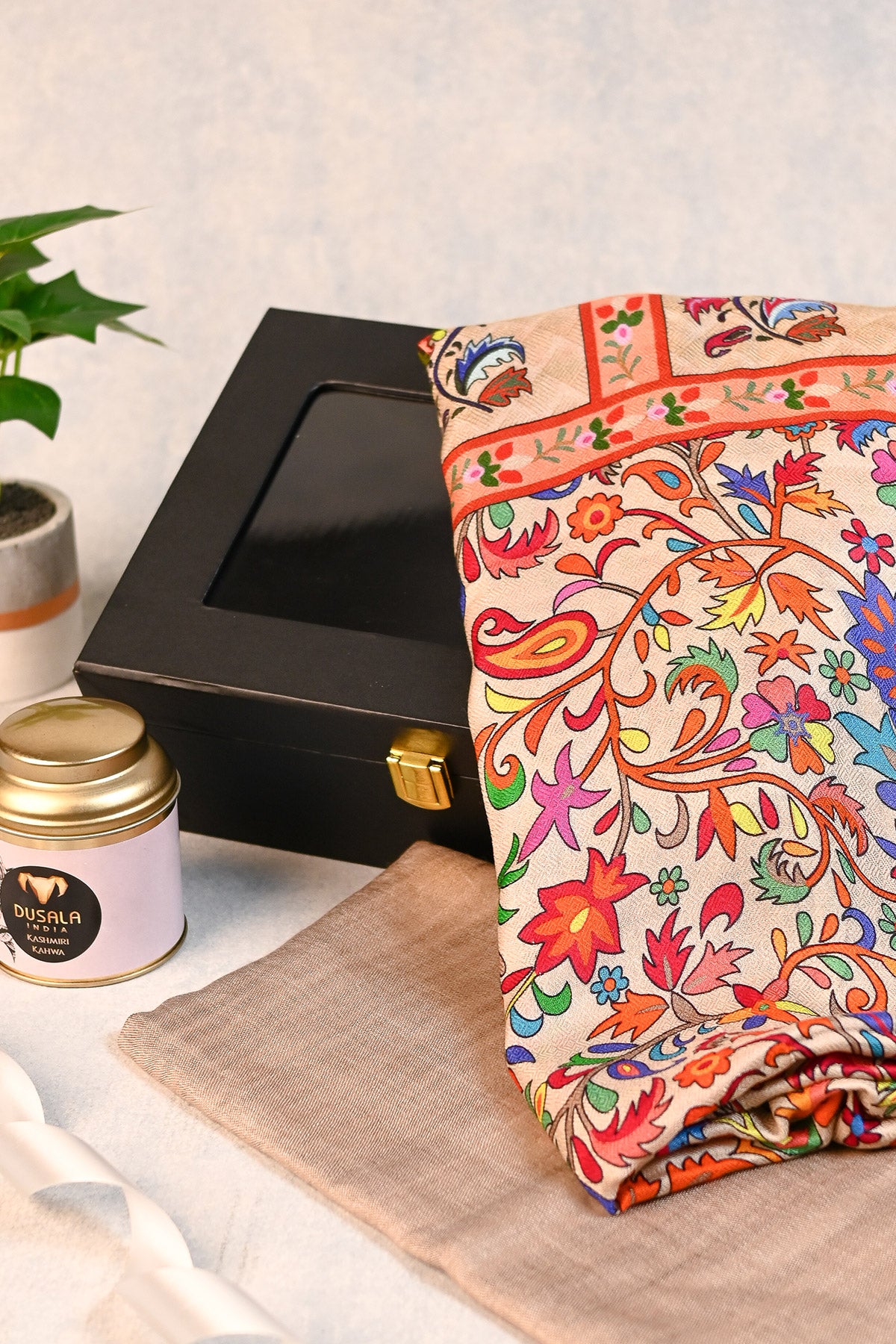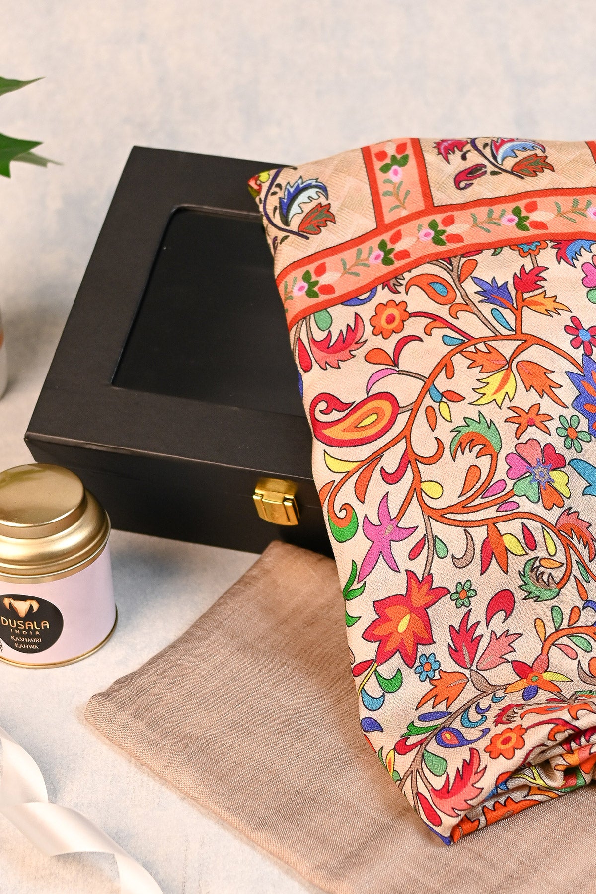 Components - 2-Stole, 1-Kahwa & 1-KesarNote - Gift samples are just for reference purpose product design and color may vary.Will take approval after order confirmation or at the time of query.