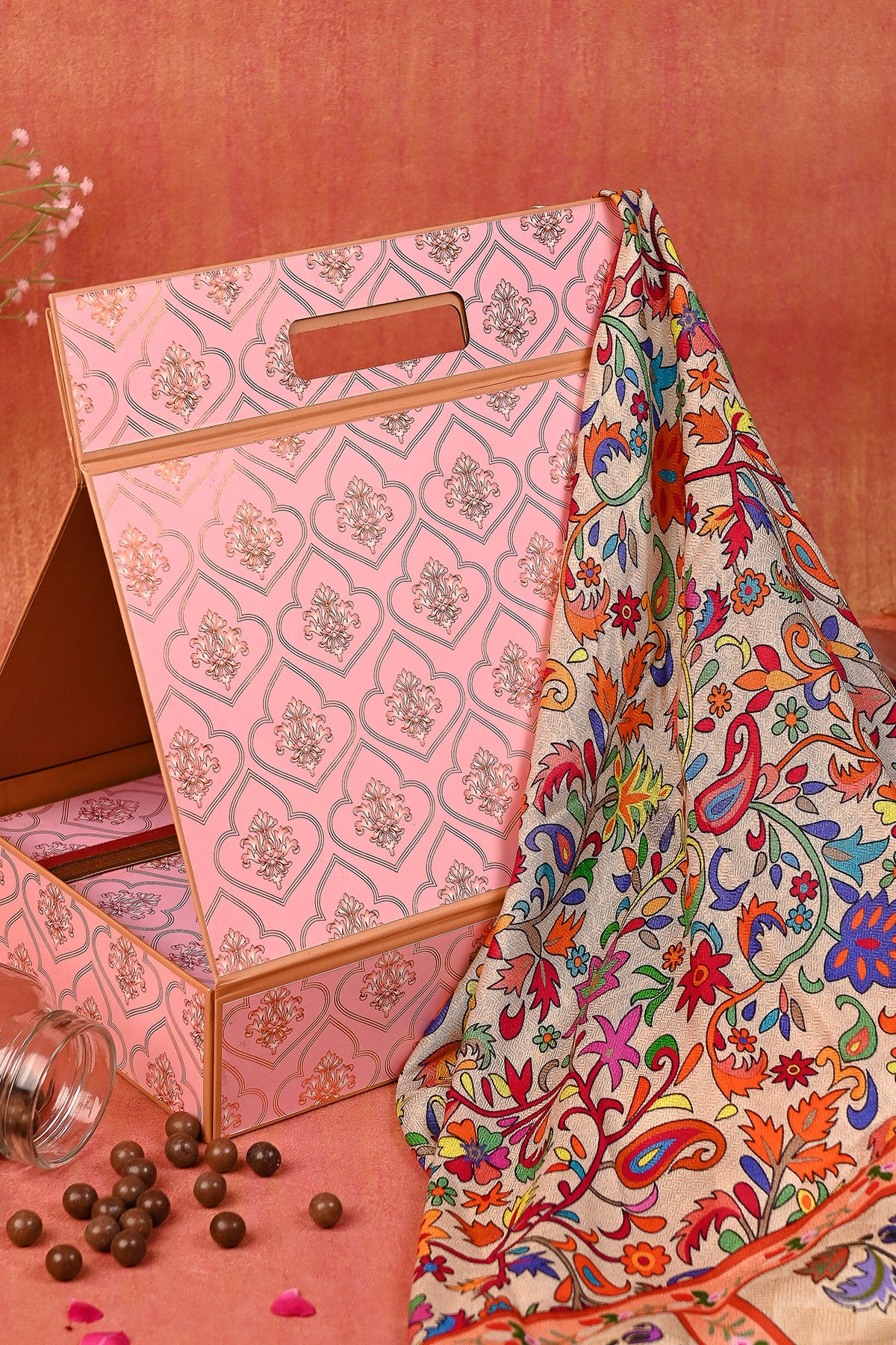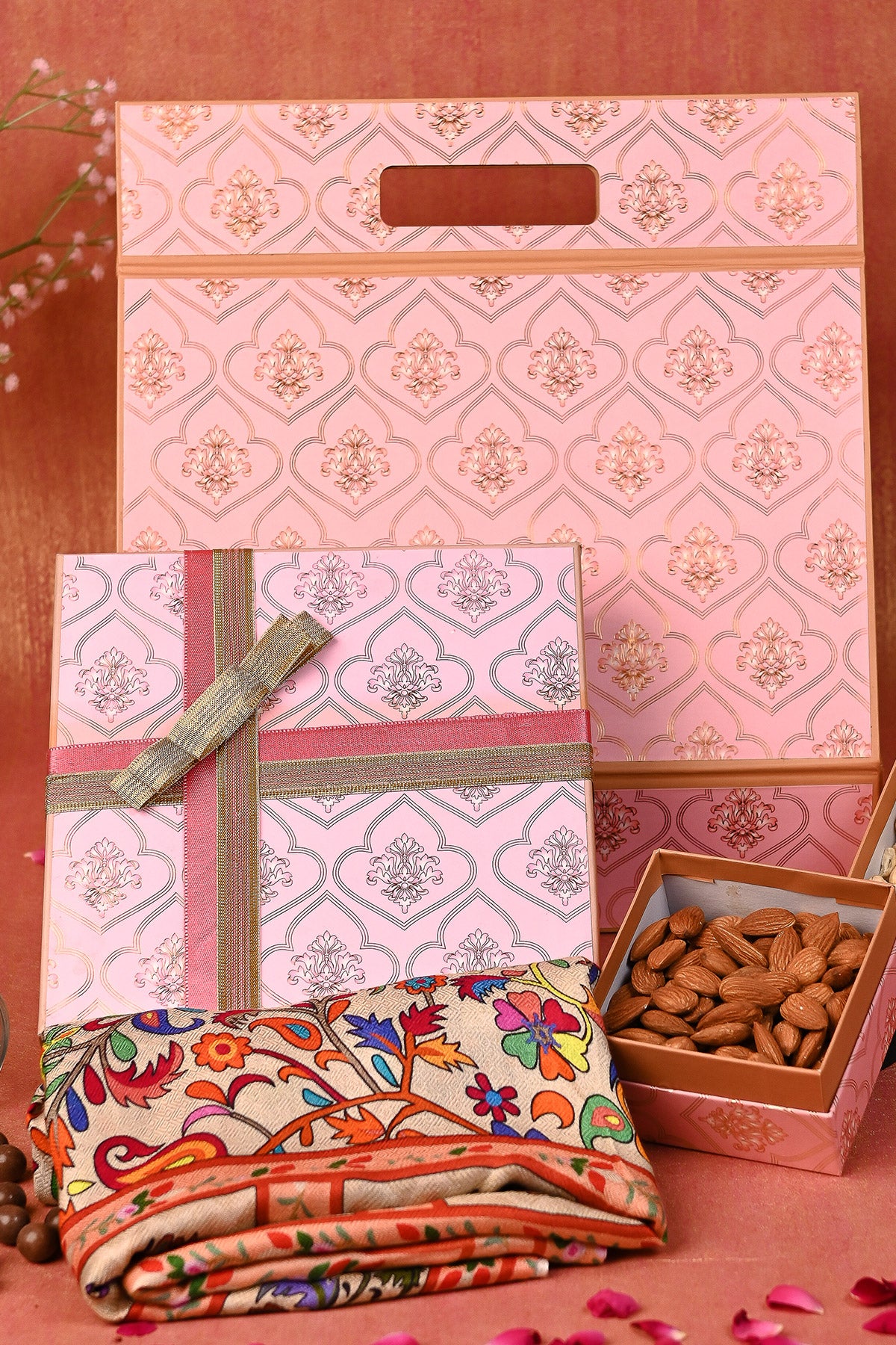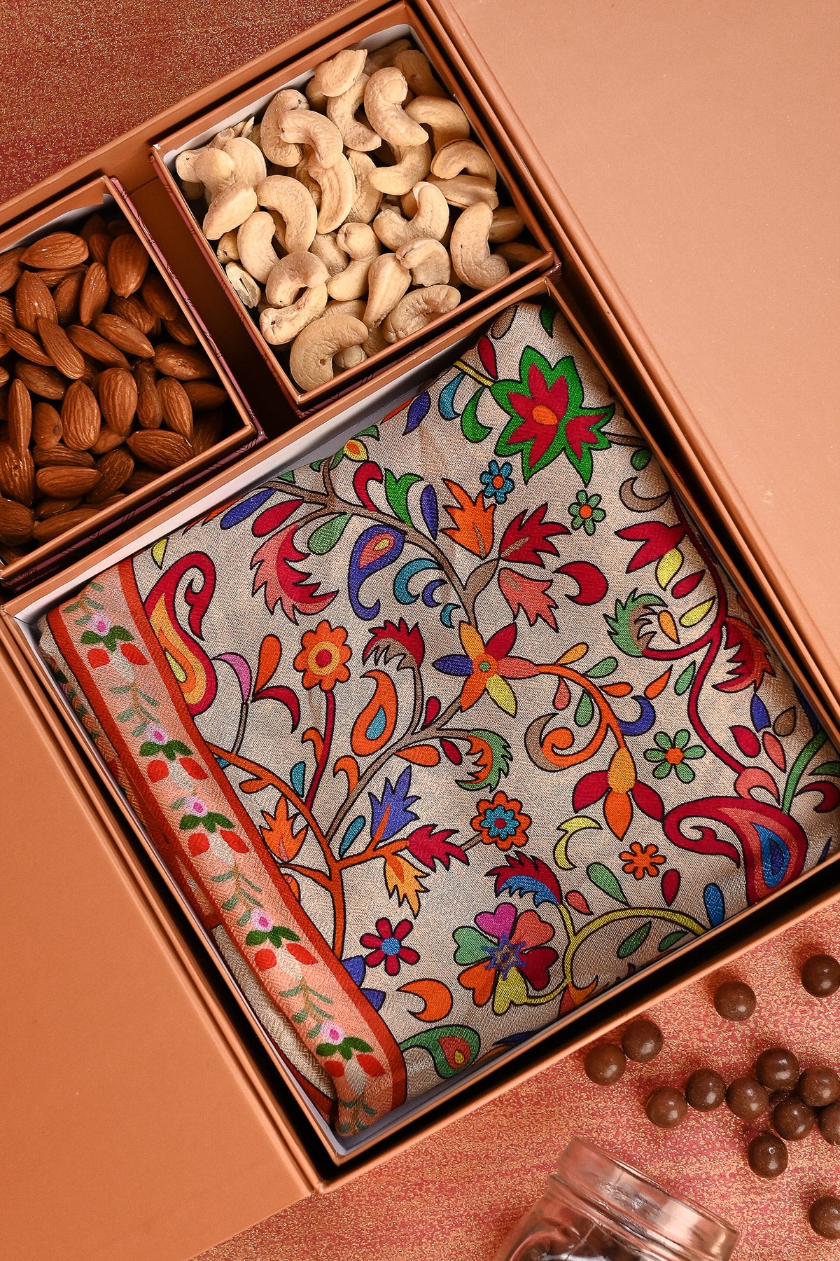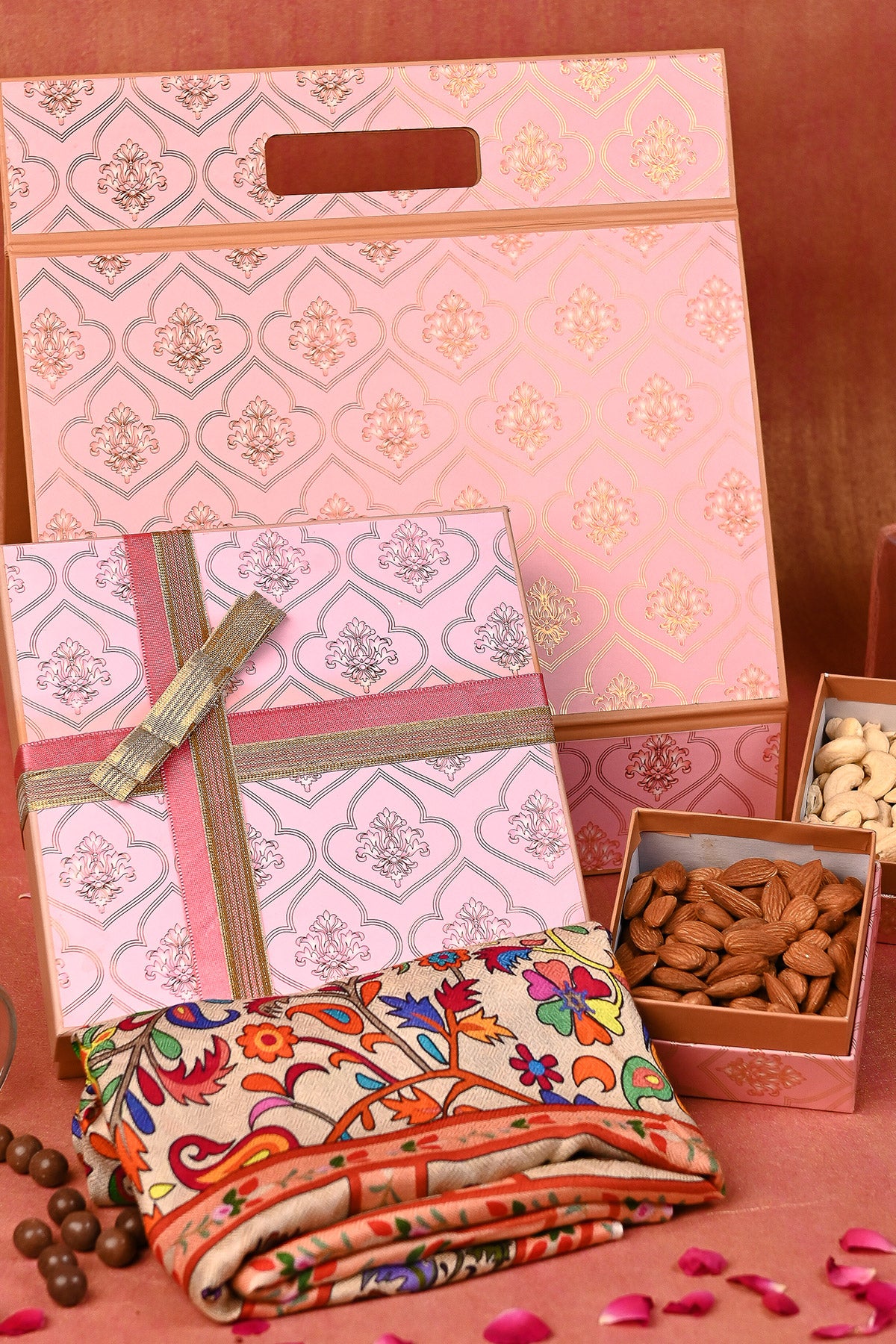 Components - 1-Stole, 1-Kahwa & DryfruitsNote - Gift samples are just for reference purpose product design and color may vary.Will take approval after order confirmation or at the time of query.
