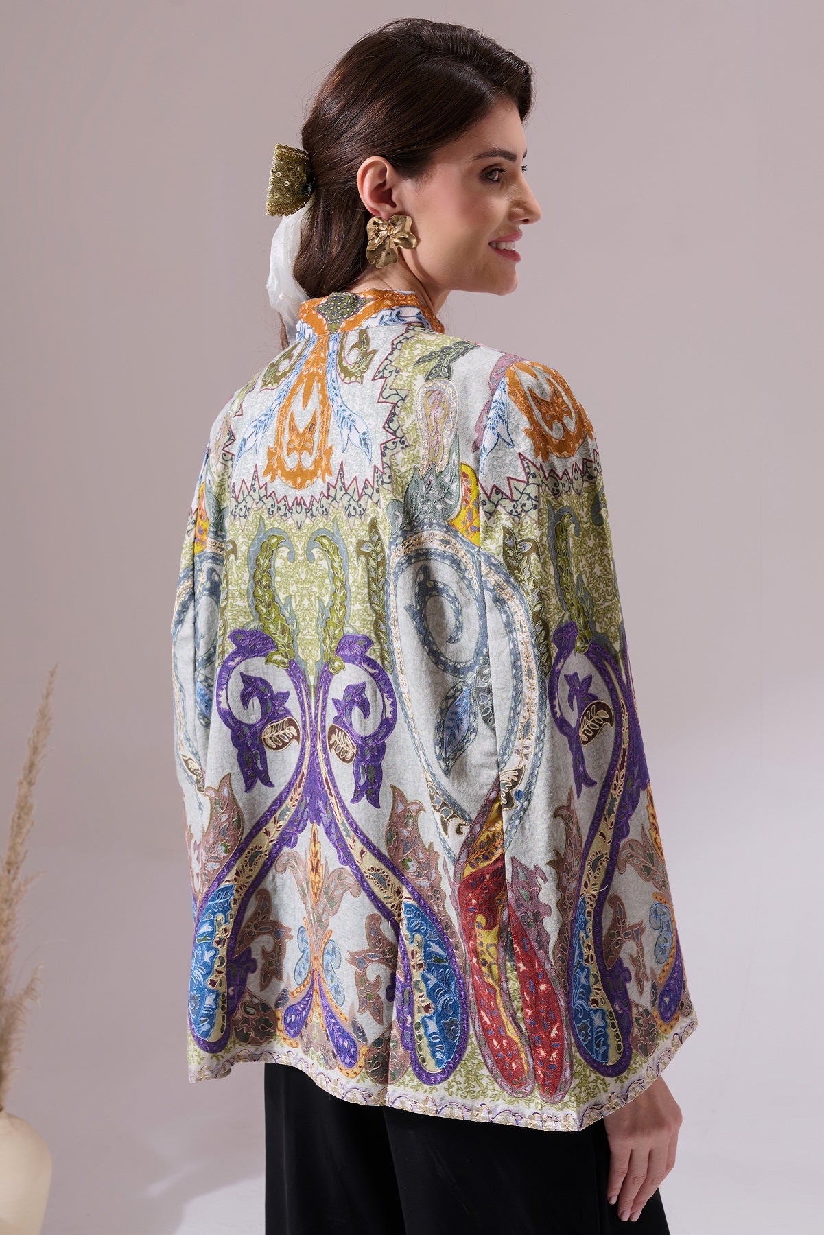 Warm earth tones Tanya represents the pinnacle of luxury and elegance in winter wear. Embrace warmth and style with this finely crafted Pashmina cape.