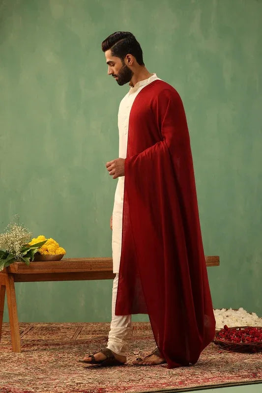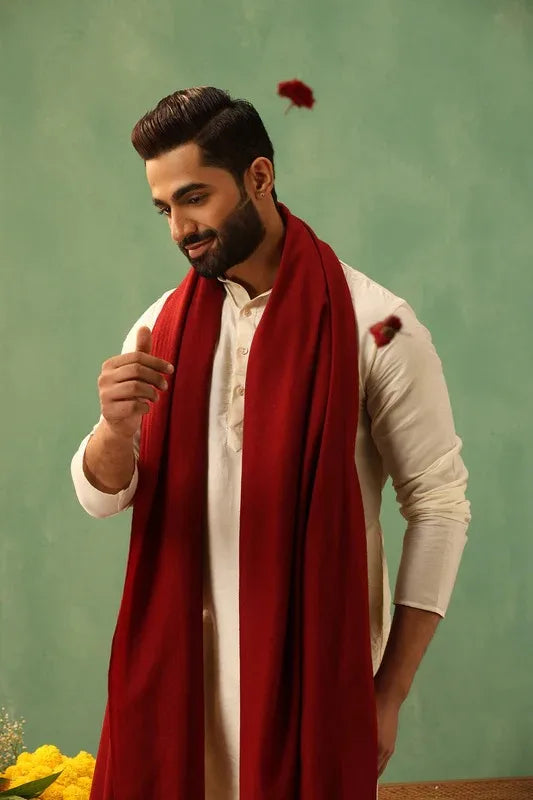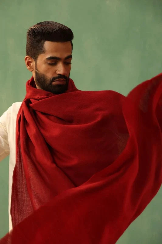 The Cohen stole, crafted from rich Cashmere Fine Wool, features a minimalist plain design in a bold red hue. This striking piece adds a pop of color and warmth, making it a standout accessory for any wardrobe.