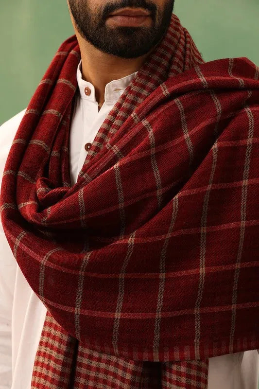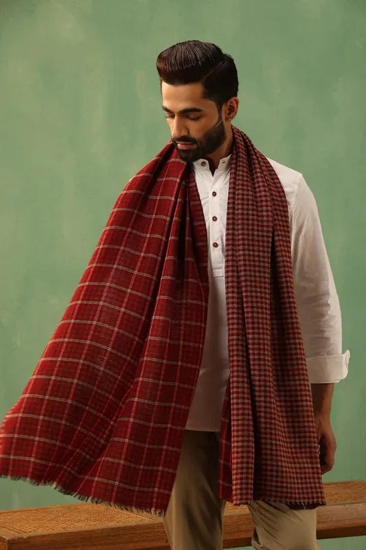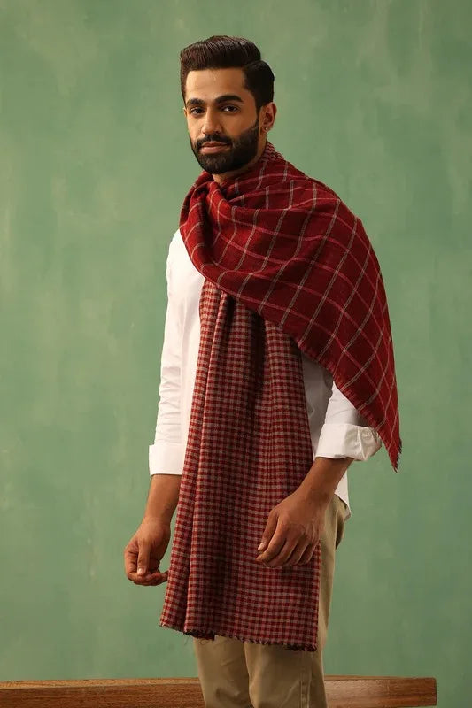 Riyaz Maroon Cashmere Checkered Stole for Men