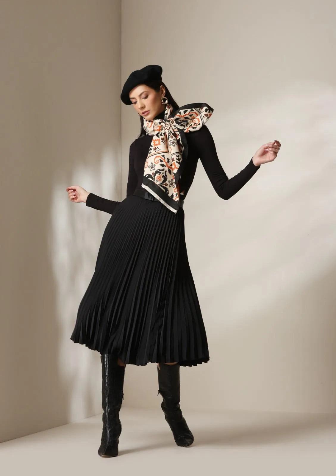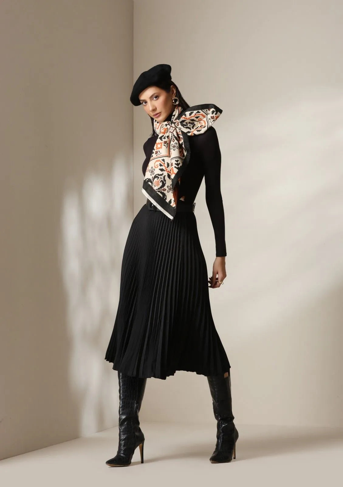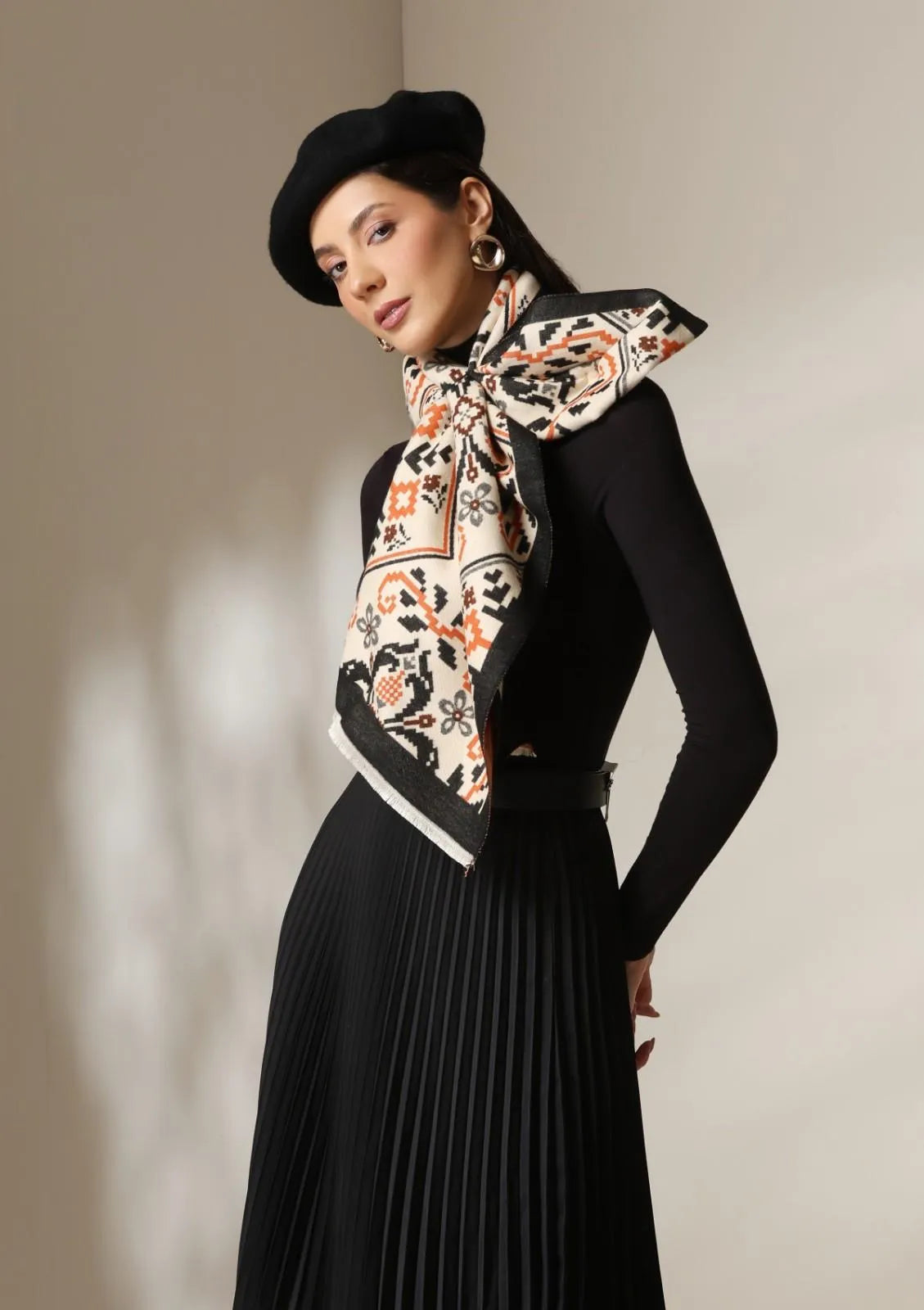 Inspired by heritage equestrian art, the Equestrian Luxe Stoles celebrates strength and motion through its hand-illustrated motifs framed in a checker-pattern border. Woven in ultra-soft vegan cashmere, this timeless unisex design blends burnt orange, ivory, and charcoal tones, making it a standout accessory for both men’s and women’s wardrobes. Perfect for layering over formal jackets or casual outerwear, it adds a touch of luxury to travel, gifting, and evening occasions.