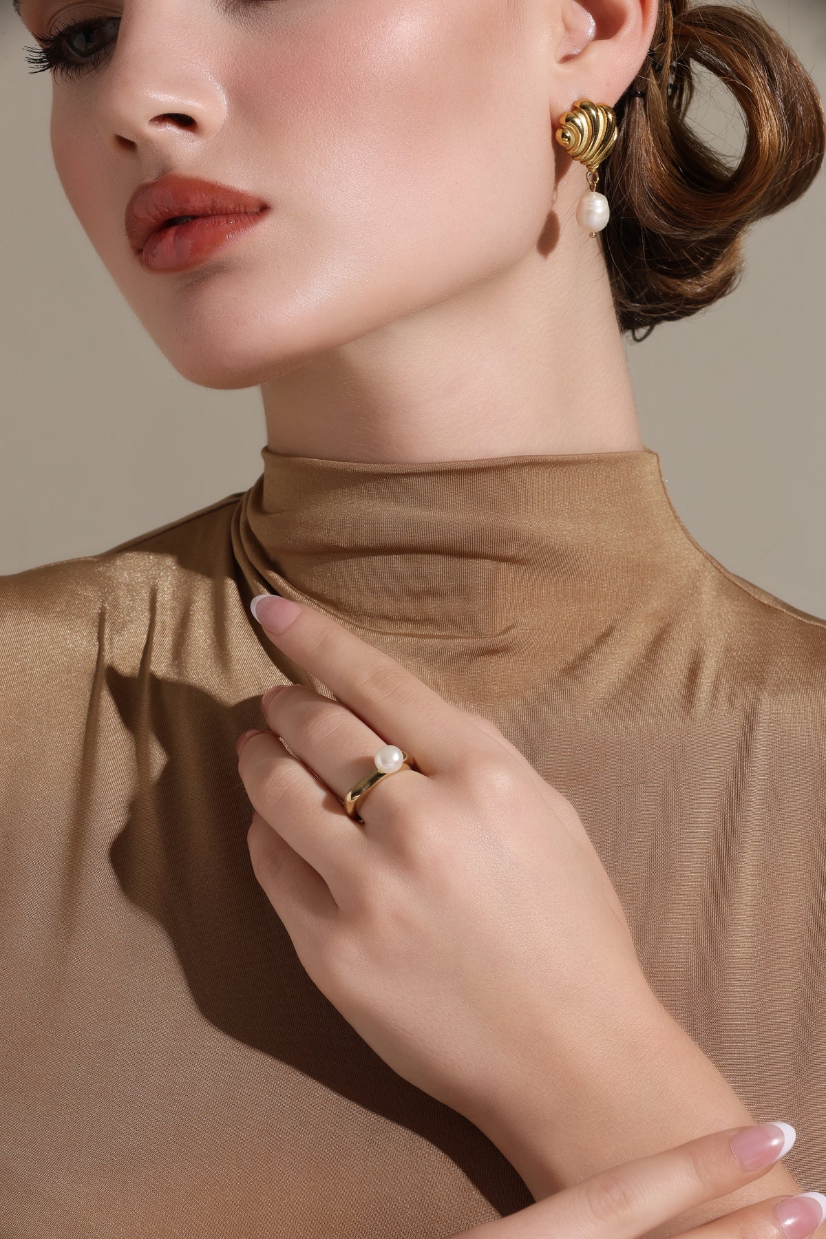 Material: Freshwater cut Pearl, 18K Gold-Plated Steel