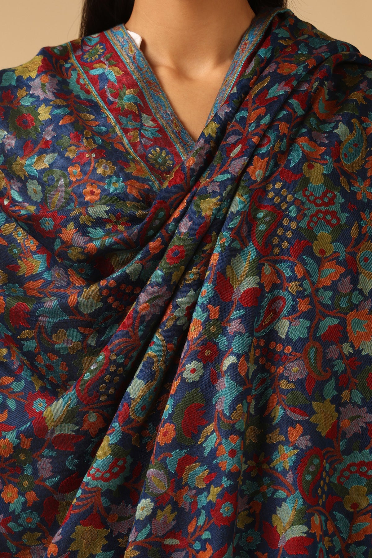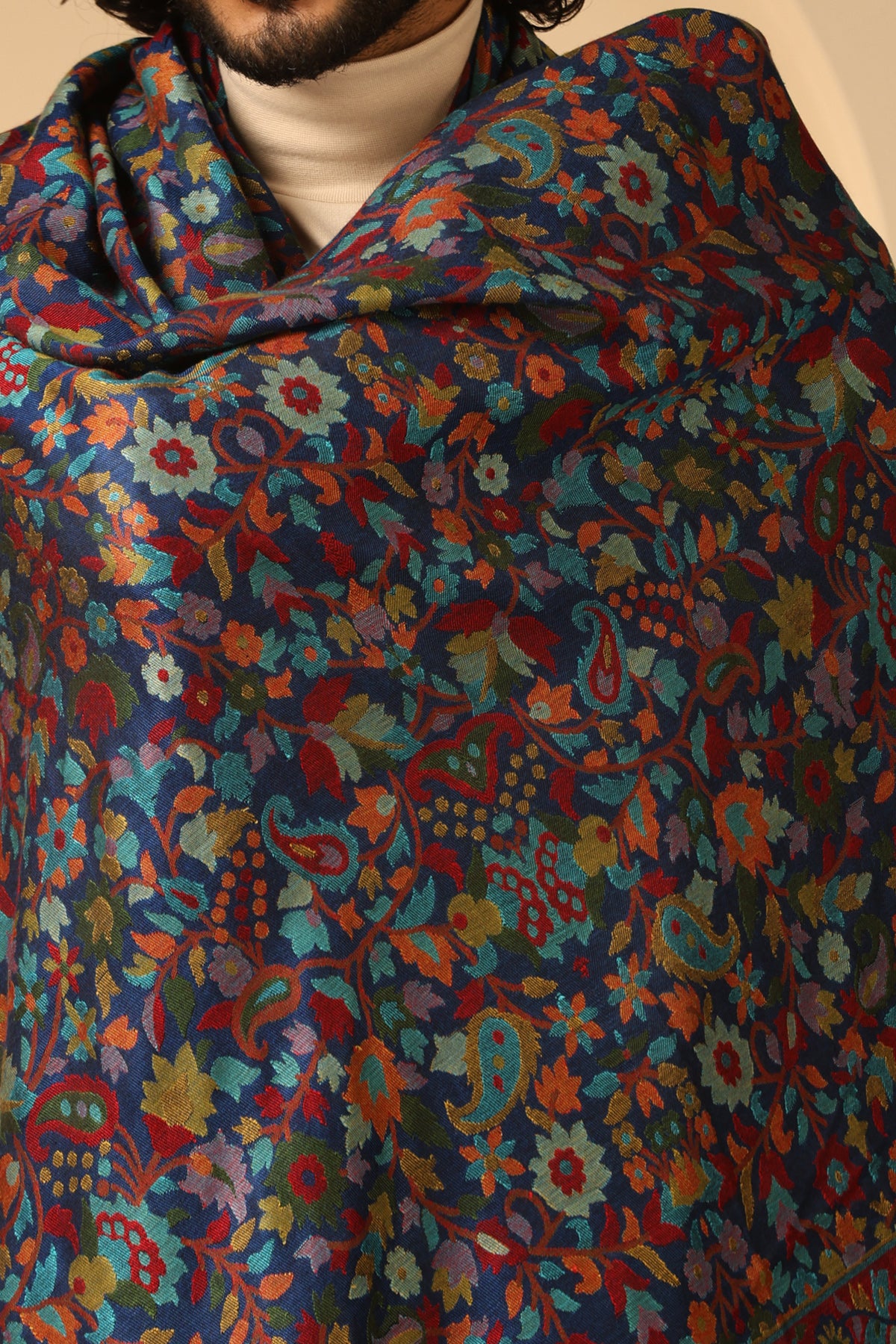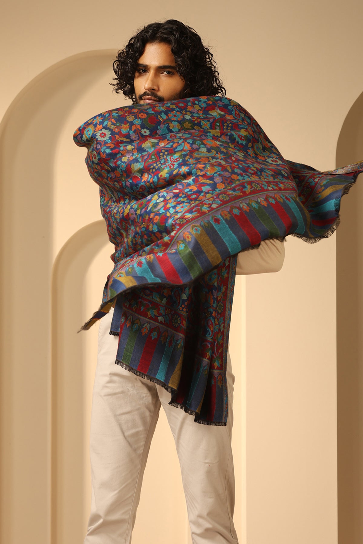 Introducing Radhi kani Design cashmere fine wool shawl in sleek black. Elevate your style with its exquisite craftsmanship. Stay cozy & chic.