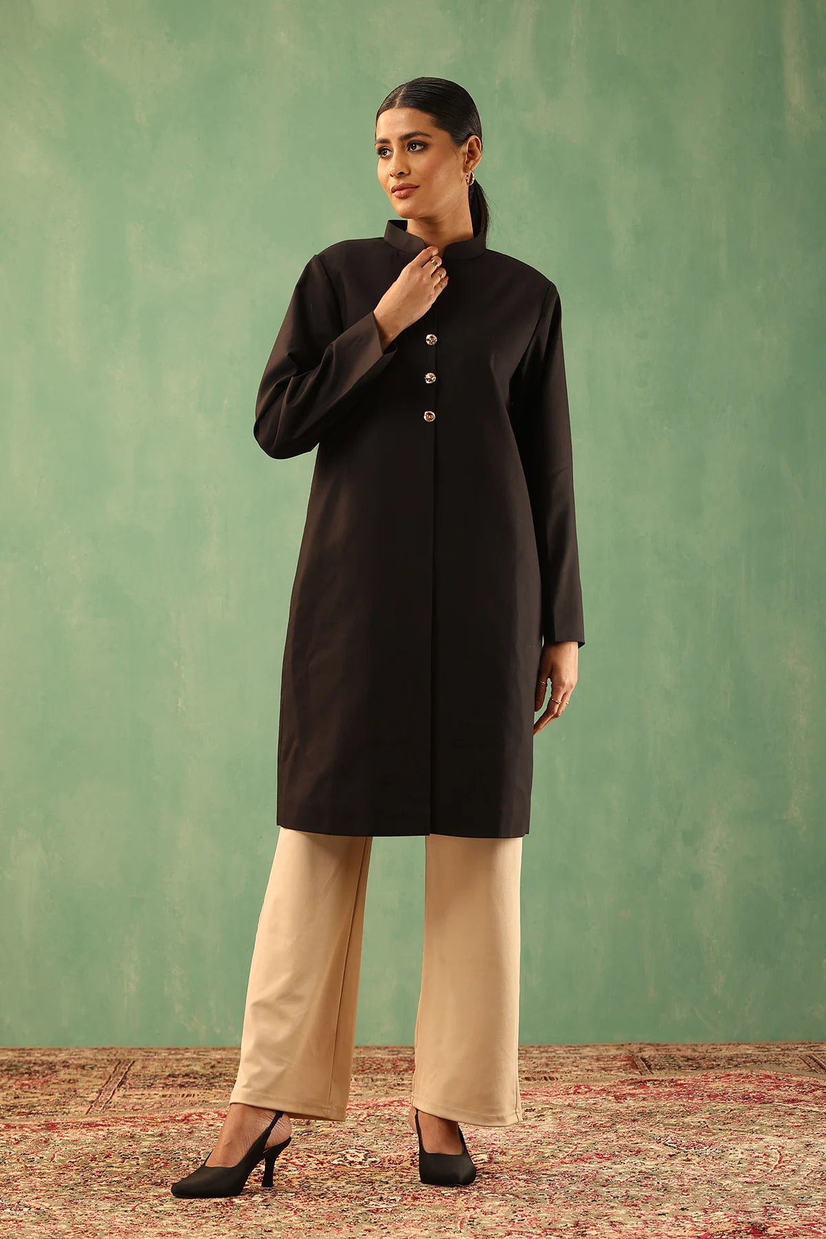 The Masha long jacket, in black, offers a sleek and elegant silhouette. This luxurious piece combines warmth with timeless style, making it a must-have for your winter wardrobe.