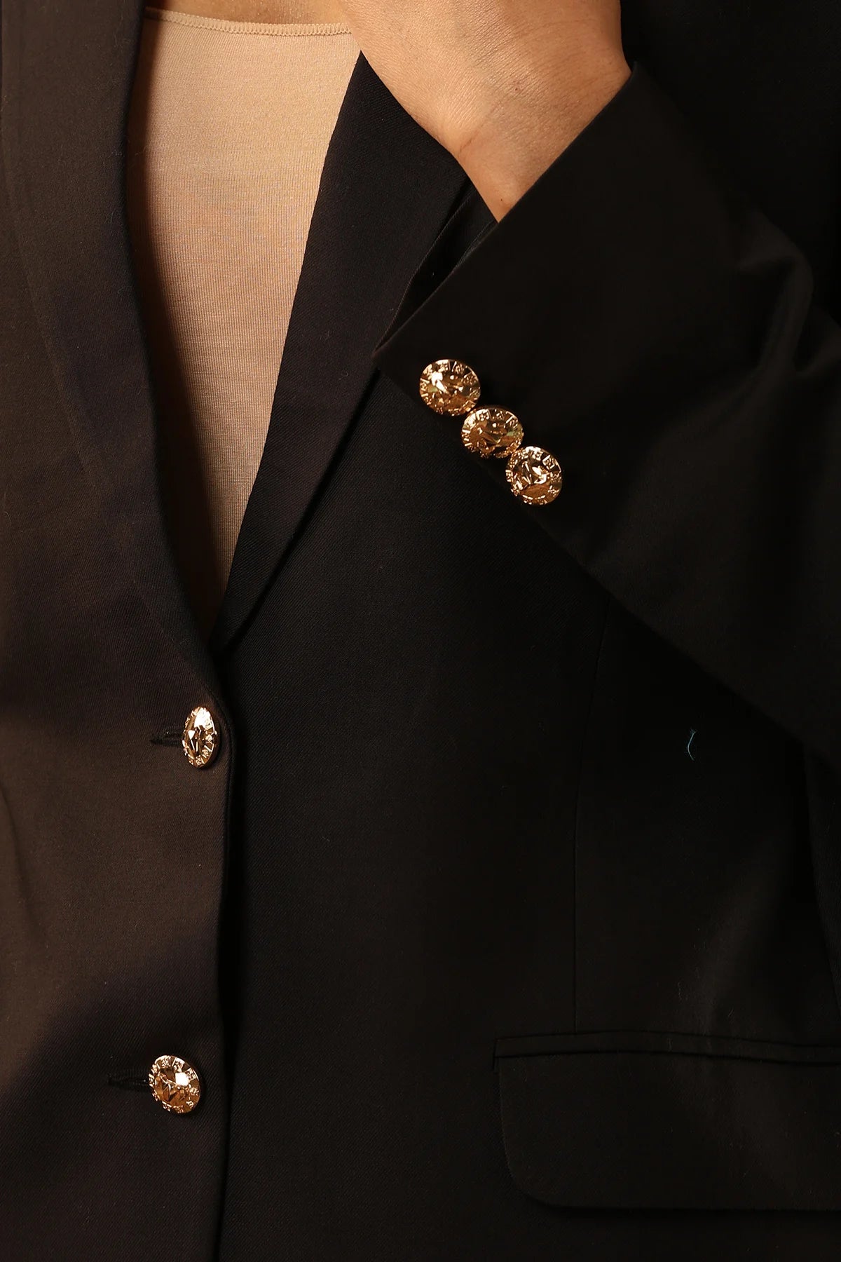 The Revai blazer, in classic black, is a sophisticated addition to any wardrobe. This versatile piece offers a perfect blend of style and warmth, ideal for both formal and casual occasions.