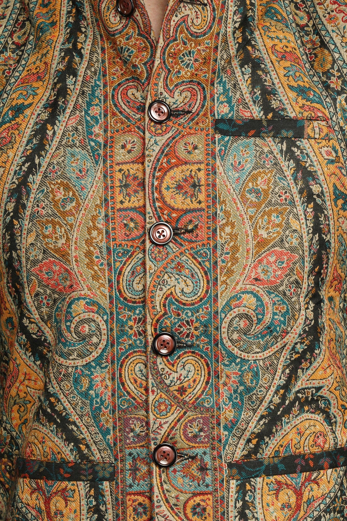 This is our Latest autumn winter launch. This is a vintage coat in classic paisley rich design. This Fabric is Fine wool silk