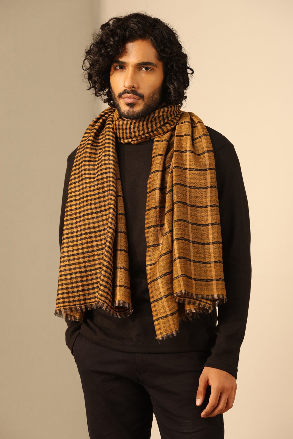 The Dhruv cashmere fine wool stole is a stunning accessory that boasts a reversible checkered design. Its exceptional craftsmanship and sophistication make it a one-of-a-kind addition to your wardrobe.