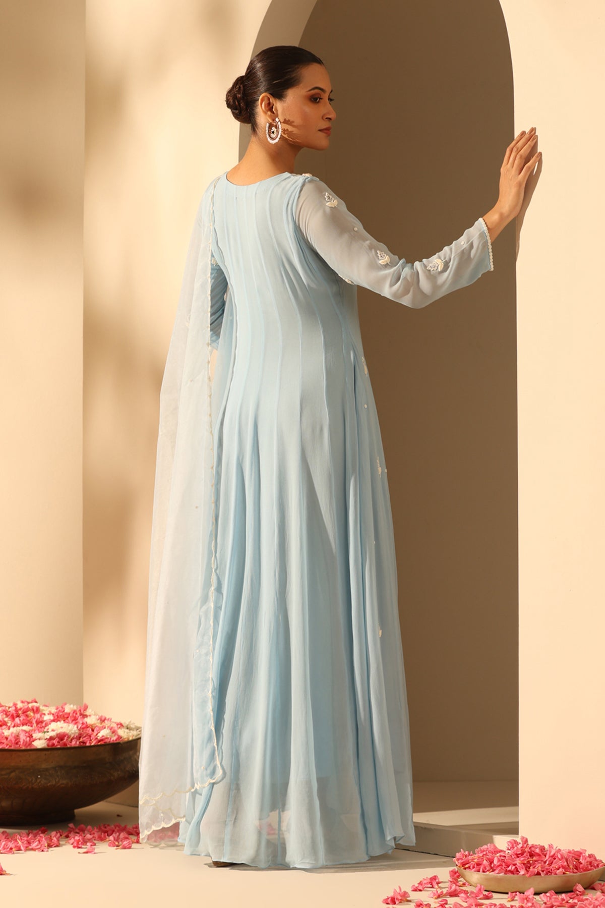 Color: Baby Blue Material: Georgette Care instructions: Dry Clean Delivery Time: 15-25 days