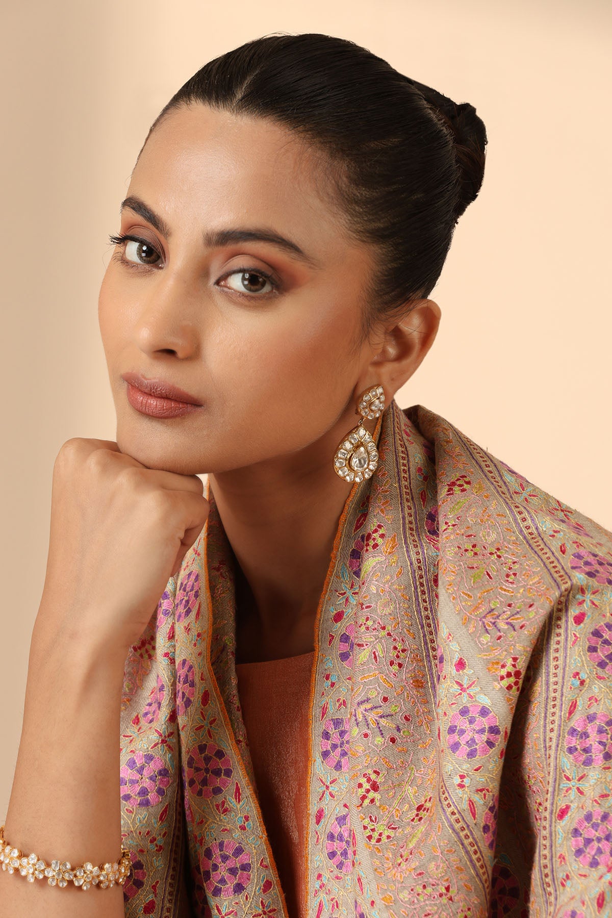 Experience luxury reimagined. Luna Pashmina combines handwoven gulab work with captivating paper mache for a unique, lightweight shawl. Soft and warm, it adds artistic flair to any outfit.