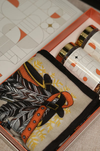 Gift Box with Modern Belt-Design Stole – All-Season Luxury Hamper