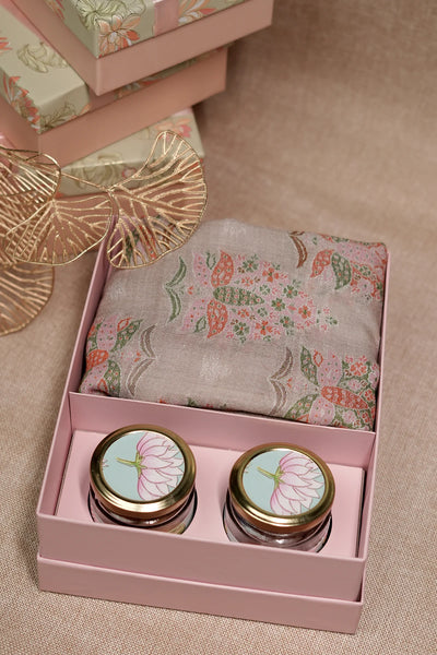 Blush Lotus Pashmina Gift Box with Handcrafted Floral Candle