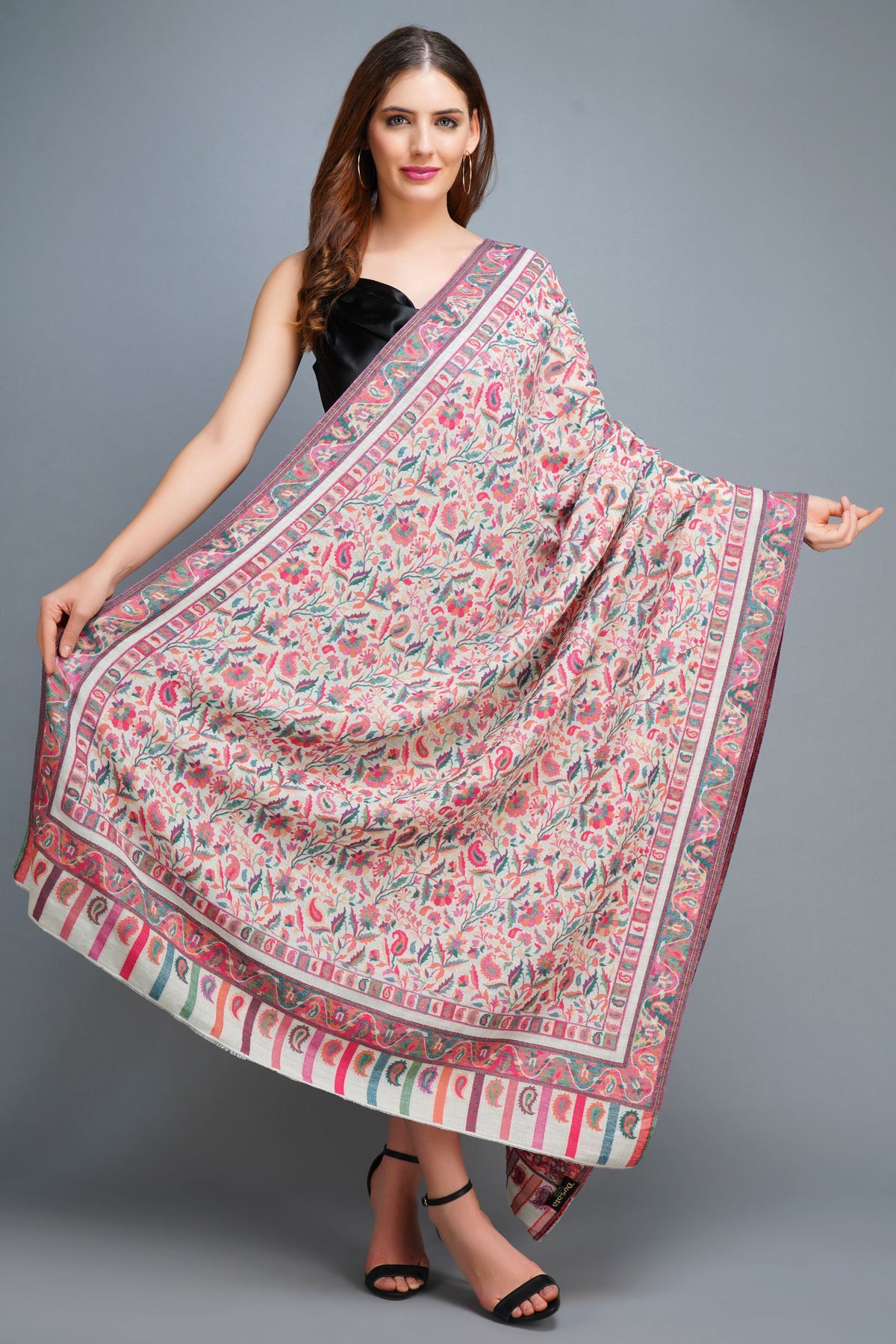 This Cashmere fine wool with kani weave design with multicolor shawl, exclusively for your fine taste. This soft, warm, light-weight Shawl will level up your Stylistic game with ease. Pair it with any outfit and the shawl size 40x80.