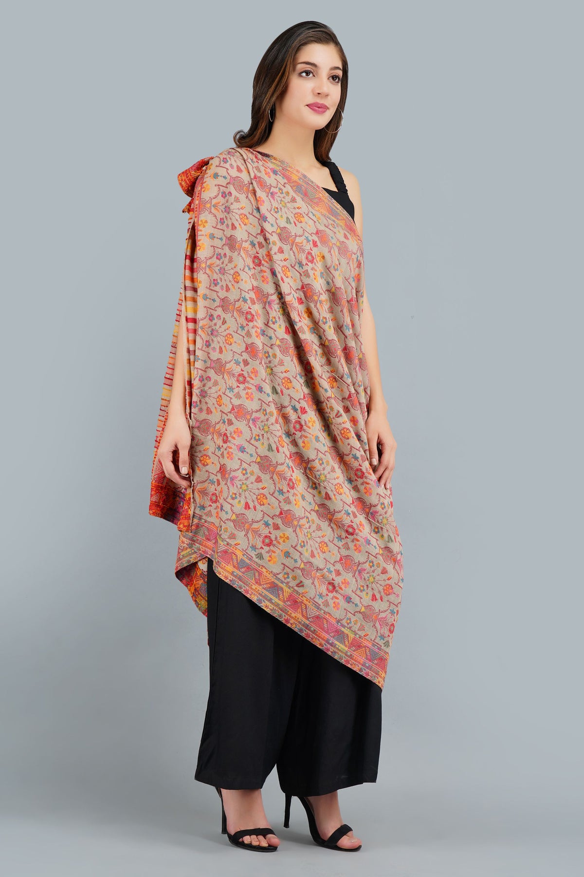 This Cashmere fine wool with kani weave design with multicolor stole, exclusively for your fine taste. This soft, warm, light-weight Stole will level up your Stylistic game with ease. Pair it with any outfit and the stole size 28x80.