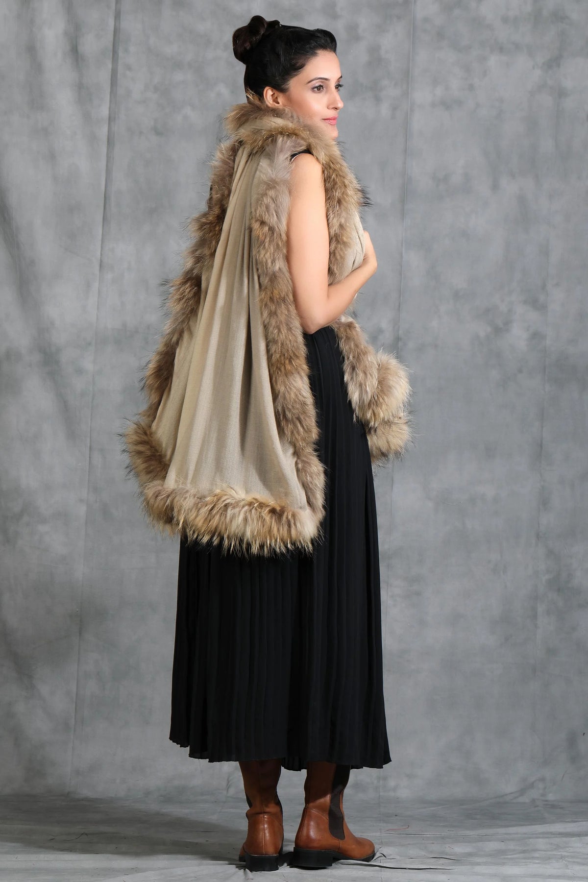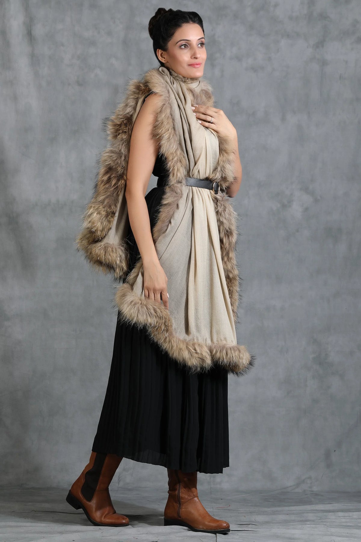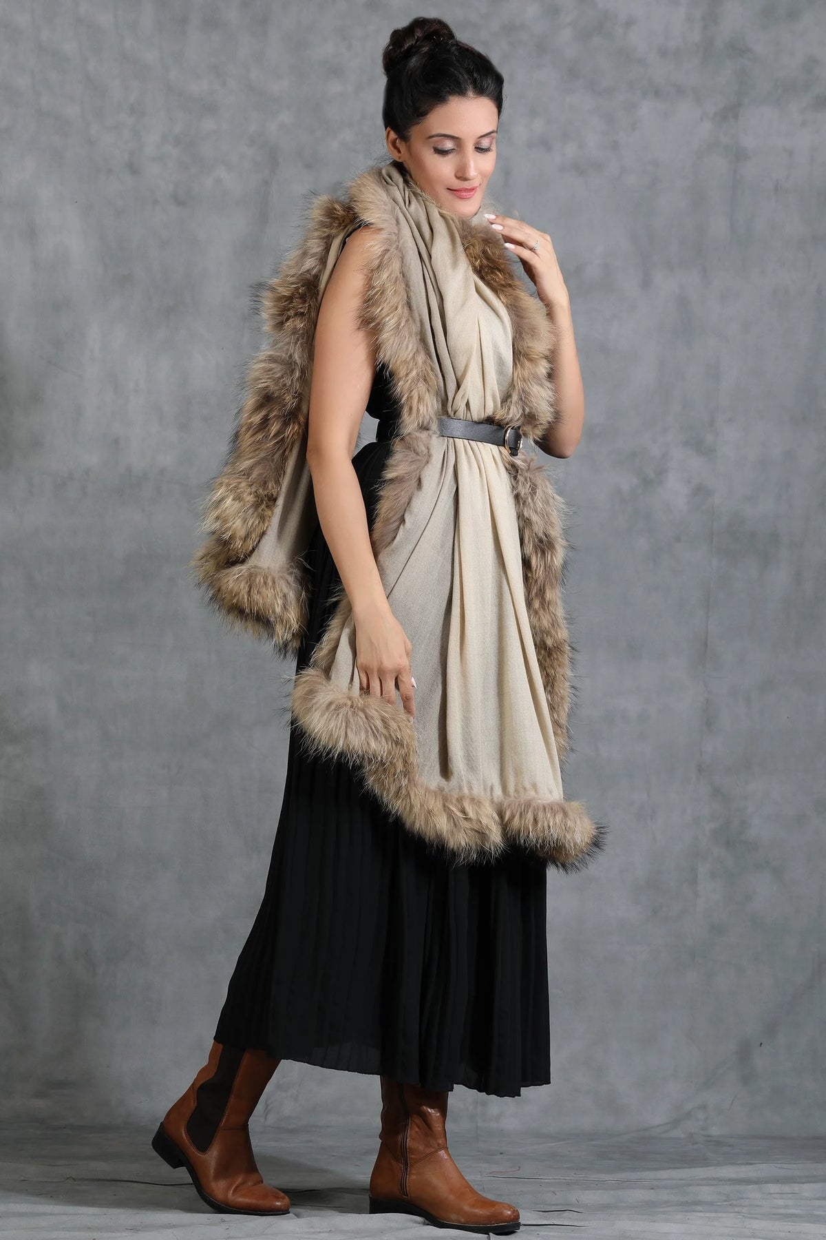 Cashmere Plain Stole With High Quality Ombre Fur Stole