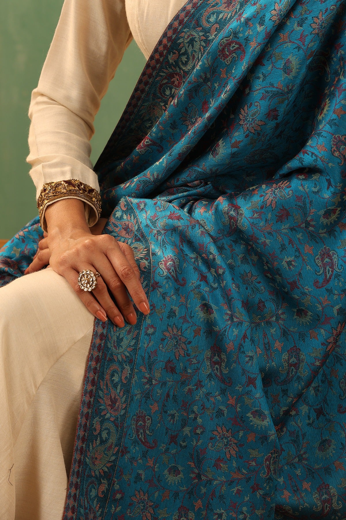 The Ahana shawl, a masterpiece of Kani all-over design, is crafted from luxurious Cashmere Fine Wool. The deep blue hue and intricate detailing reflect the skilled craftsmanship of this piece, offering a timeless addition to your wardrobe.