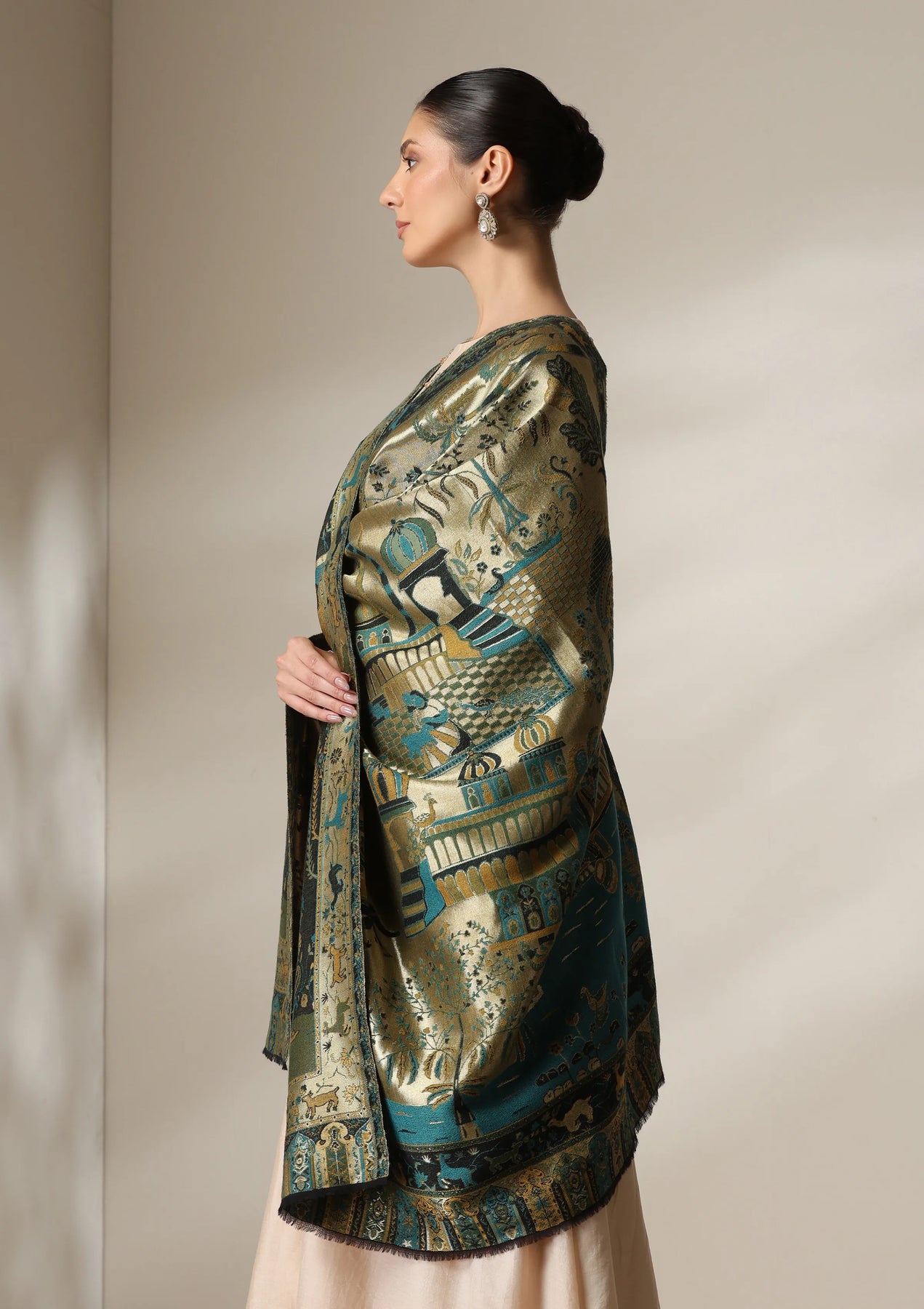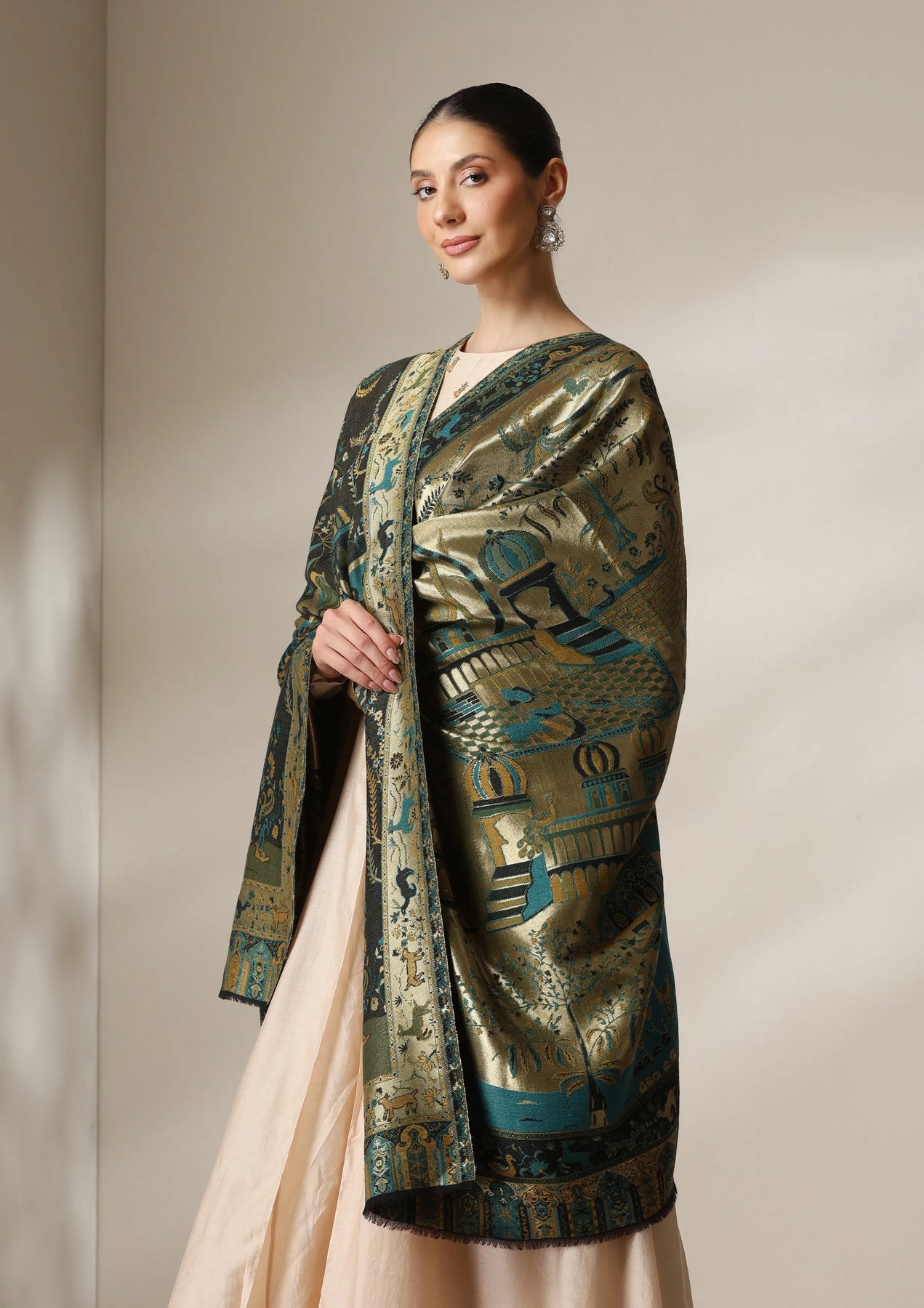 Dusala Emerald Palace Reversible Zari Fine Wool Shawl