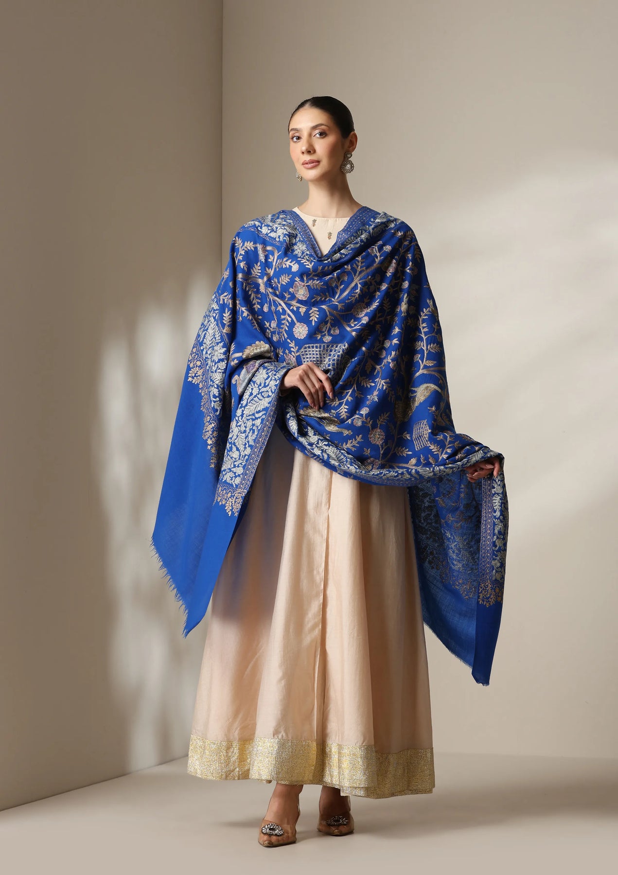 Dusala Royal Blue Aari Embroidery Fine Wool Shawl