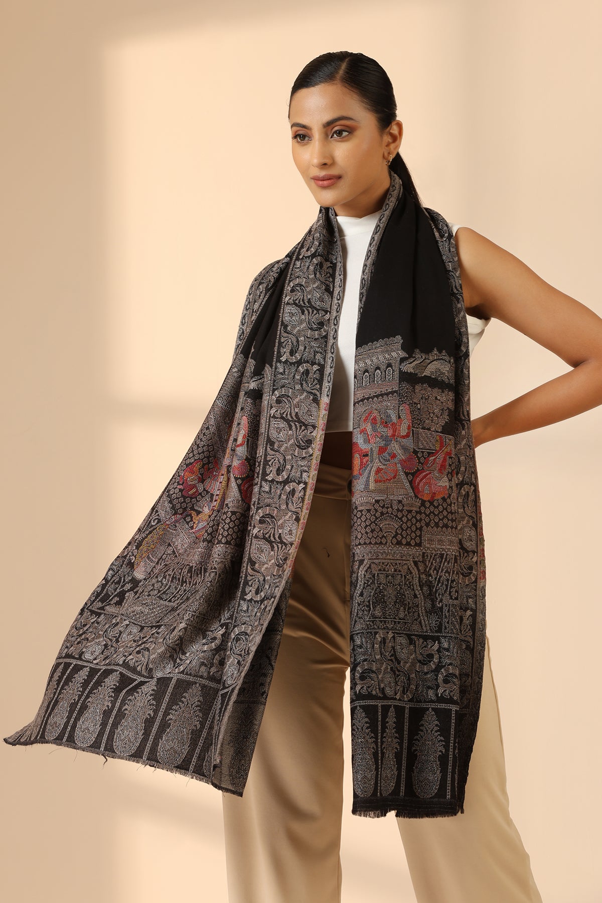 Introducing the Shwena stole, a masterpiece of sophistication crafted from luxurious cashmere fine wool. Adorned with exquisite embroidery, this stole exudes elegance and charm. Its intricate design adds a touch of artistry and allure to any outfit, making it a versatile accessory for both casual and formal occasions.